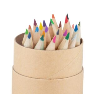 Estuche en carton cilindrico que contiene 12 colores de madera y tapa con tajalapiz || Material: Papel + ABS || Tamaño: Diámetro de 3.50 cm