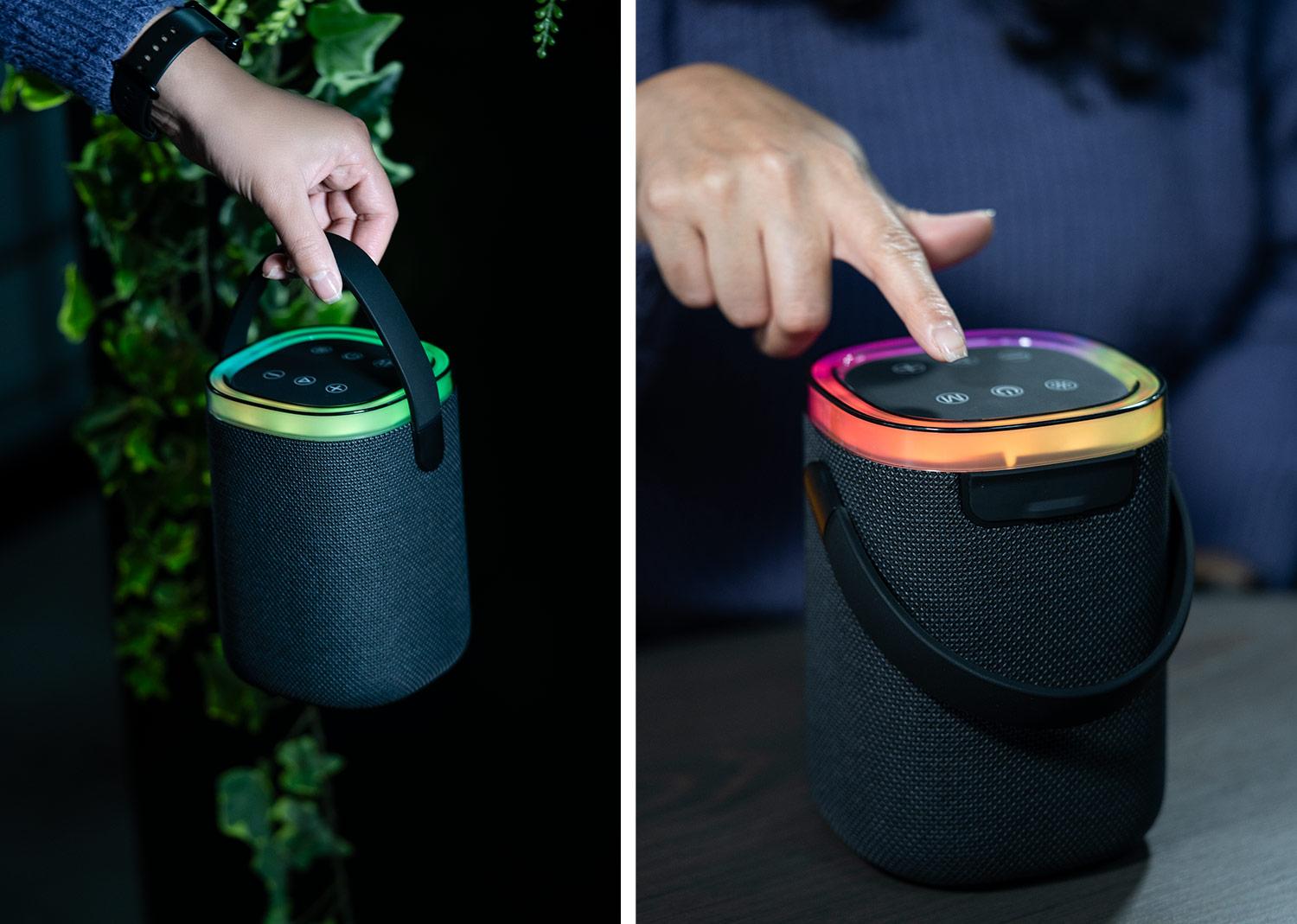 Disenado en ABS con malla resistente, cuenta con un altavoz de 5 W × 1, bateria de 1500 mAh y hasta 5 horas de reproduccion. Compatible con Bluetooth, tarjeta TF, FM, USB, AUX y funcion de llamada. Incluye asa para transporte, luces RGB y proteccion contra salpicaduras || Material: ABS + Tejido de Malla || Tamaño: Diámetro de 0 cm
