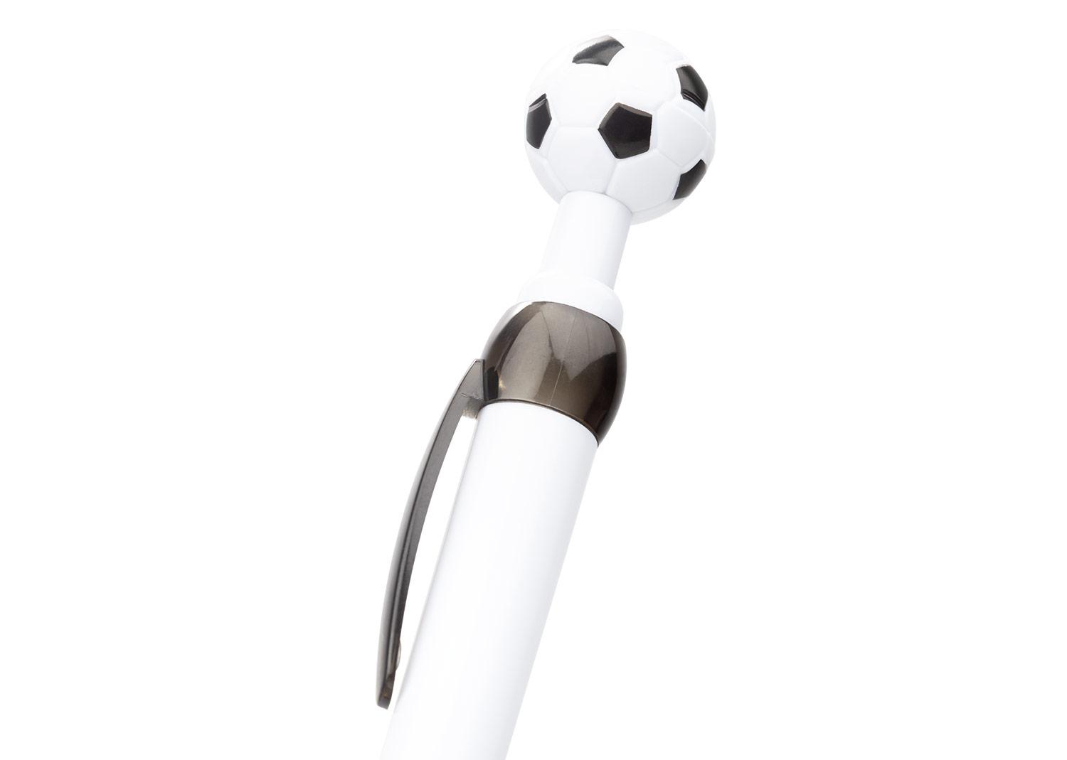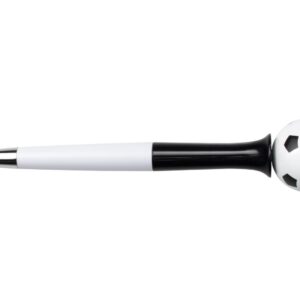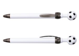 Con barril blanco solido, clip y punta en acabado traslucido, este boligrafo destaca por su empujador con diseno de balon de futbol. Su mecanismo retractil lo hace practico y funcional, ideal para quienes buscan un toque deportivo en sus herramientas de escritura || Material: Plástico ABS || Tamaño: Diámetro de 1.2 cm