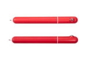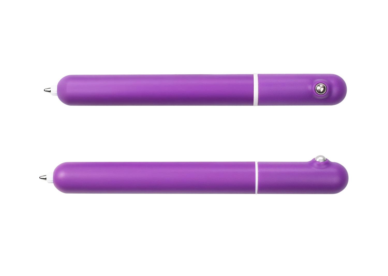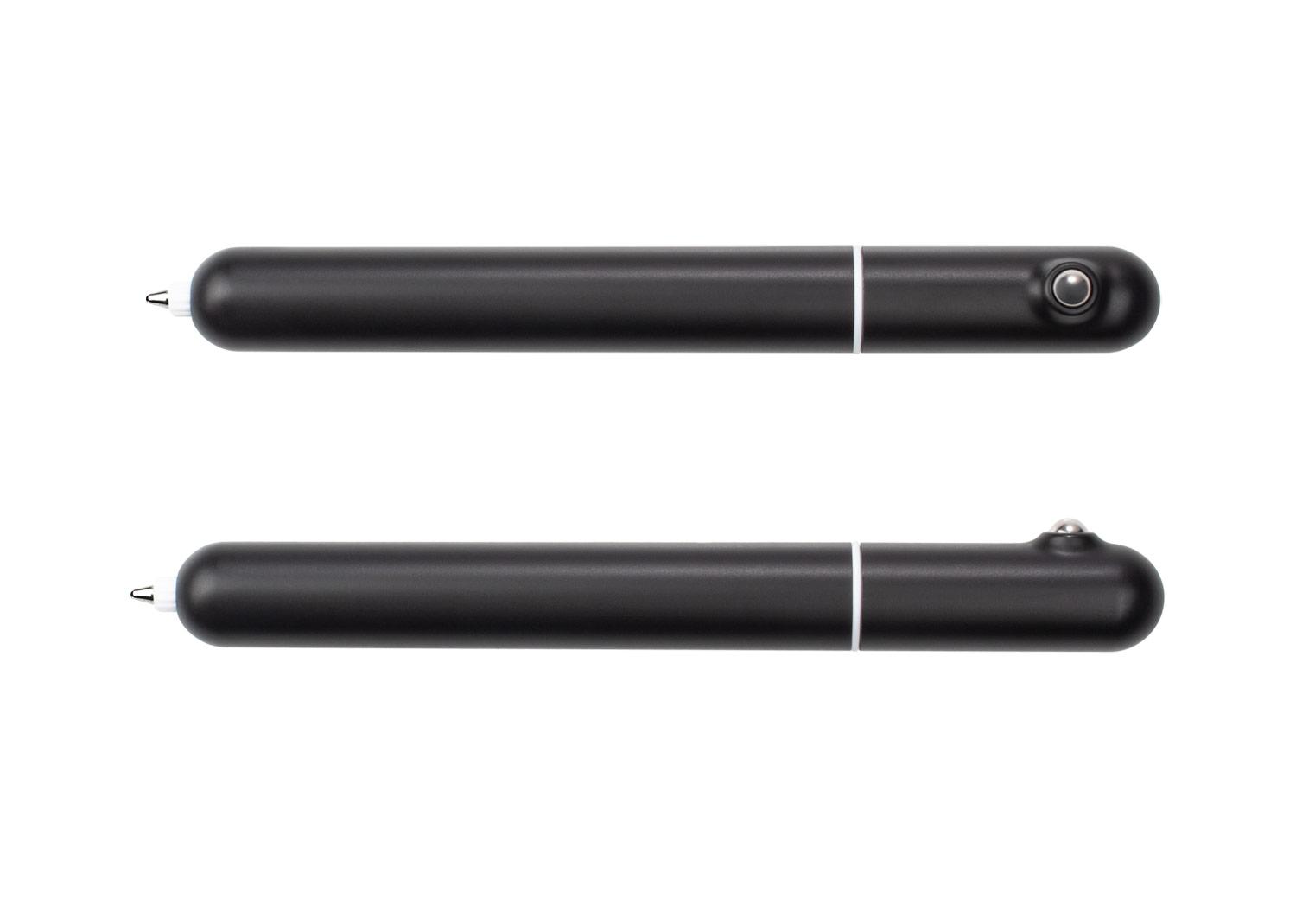 Boligrafo con barril de color solido y elegante anillo cromado. En la parte superior, incorpora una esfera metalica con funcion antiestres, ideal para mantener las manos ocupadas durante la jornada. El sistema de giro activa la escritura de forma practica y fluida. Un diseno moderno que combina funcionalidad y un toque interactivo || Material: Plástico ABS || Tamaño: Diámetro de 0.9 cm
