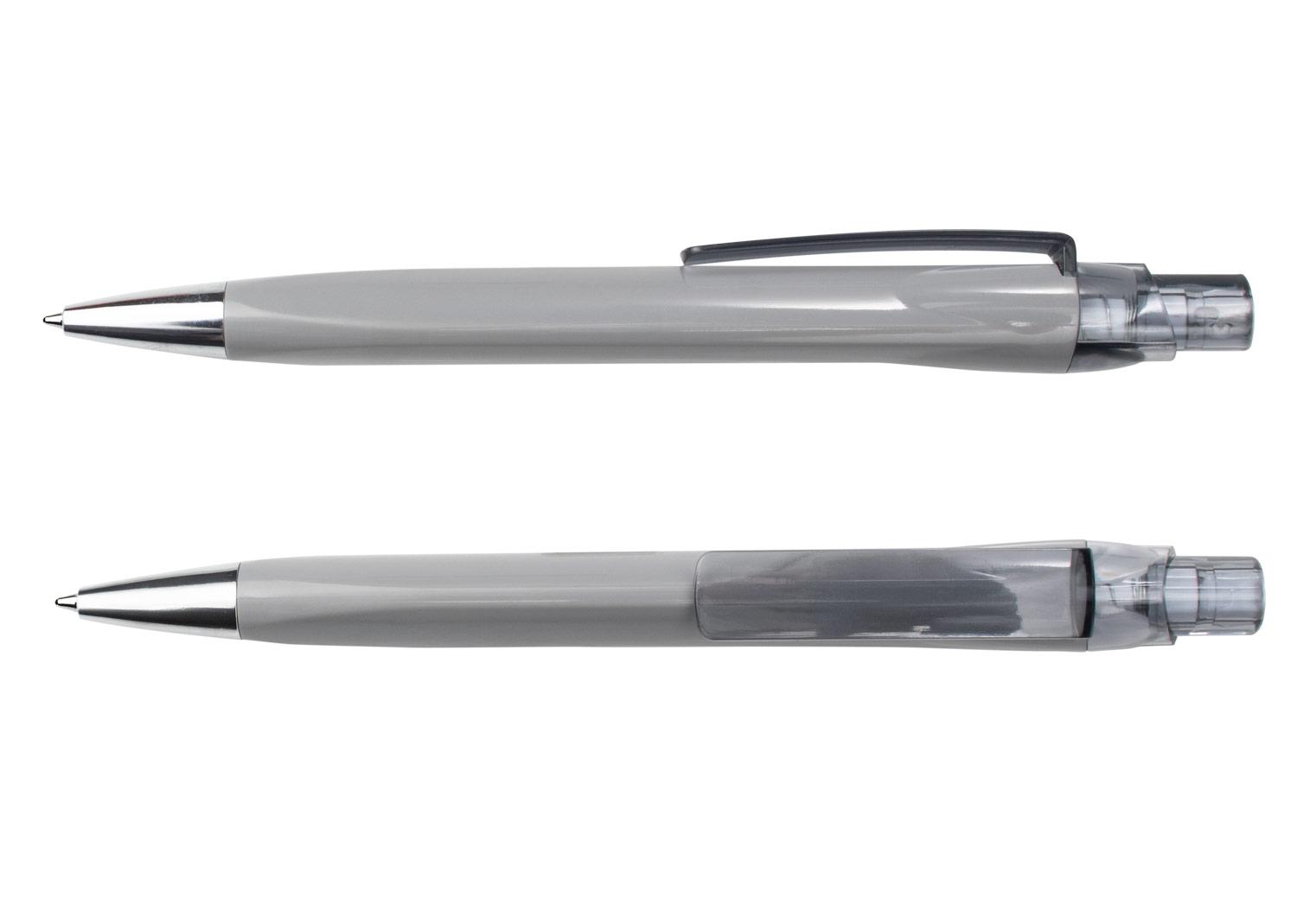 Boligrafo con barril de color solido, clip y empujador en acabado transparente, y punta cromada que aporta un toque moderno al diseno. Su estructura liviana y funcional lo hace ideal para uso diario en distintos entornos || Material: Plástico ABS || Tamaño: Diámetro de 0.9 cm