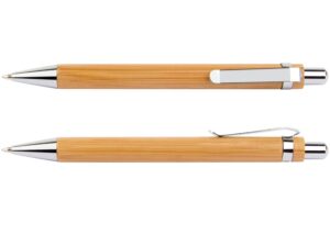 Boligrafo ecologico elaborado en bambu. Sistema retractil. Clip y punta metalicos. (Boligrafo/Esfero) || Material: Bambú + Metal || Tamaño: 1.00 x 13.80 x 1.00 cm