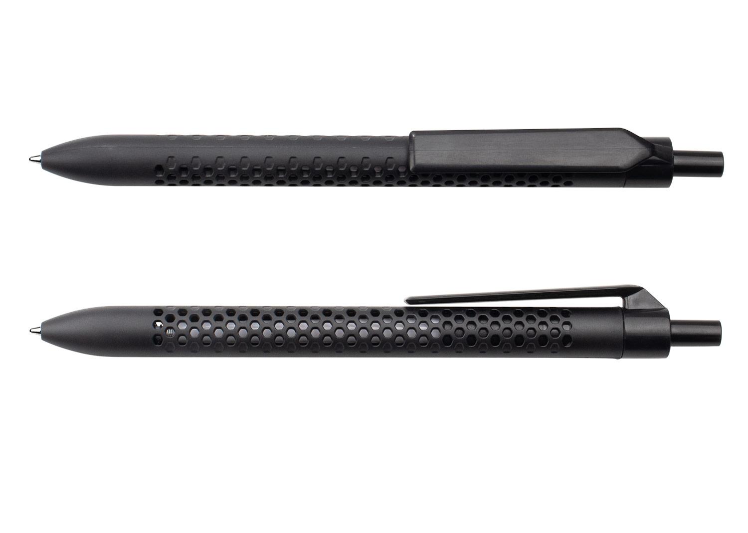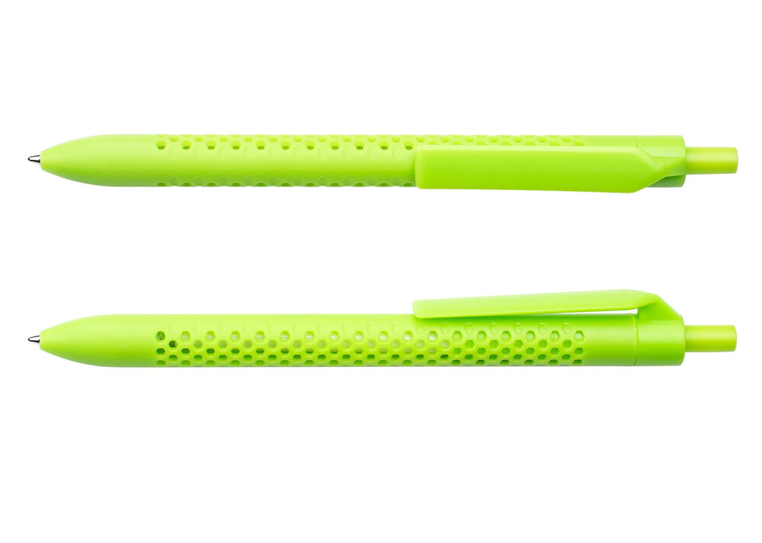 Boligrafo retractil con barril de color solido y diseno perforado que aporta un estilo moderno y funcional. Cuenta con clip y boton del mismo color, lo que complementa su apariencia uniforme. Ideal para uso diario, combina comodidad de escritura con un diseno llamativo || Material: ABS || Tamaño: Diámetro de 0.7 cm