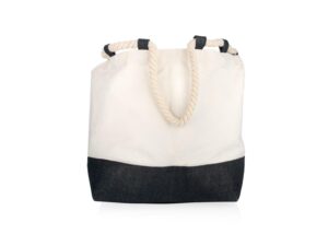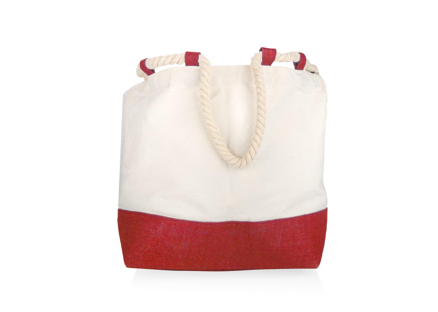 Bolsa de playa de estilo fresco, fabricada en yute y algodon. Cuenta con resistentes asas de cordon trenzado para mayor comodidad al llevarla || Material: Algodón y Yute