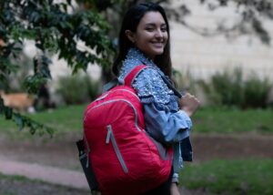 Morral plegable impermeable, con cargaderas ajustables, bolsillo frontal, medio y principal con cremallera, 2 bolsillos laterales en malla para botellas y cables. Espacio interior con compartimento ideal para documentos. La tela del cuerpo es impermeable (aproximadamente 80%), ya que los accesorios como malla, cremallera y forro no lo son. Incluye bolsa para guardar y transportar facilmente cuando esta plegado. Volumen aproximado: 20 litros || Material: Poliester impermeable 70D || Tamaño: 30.50 x 45.00 x 15.00 cm