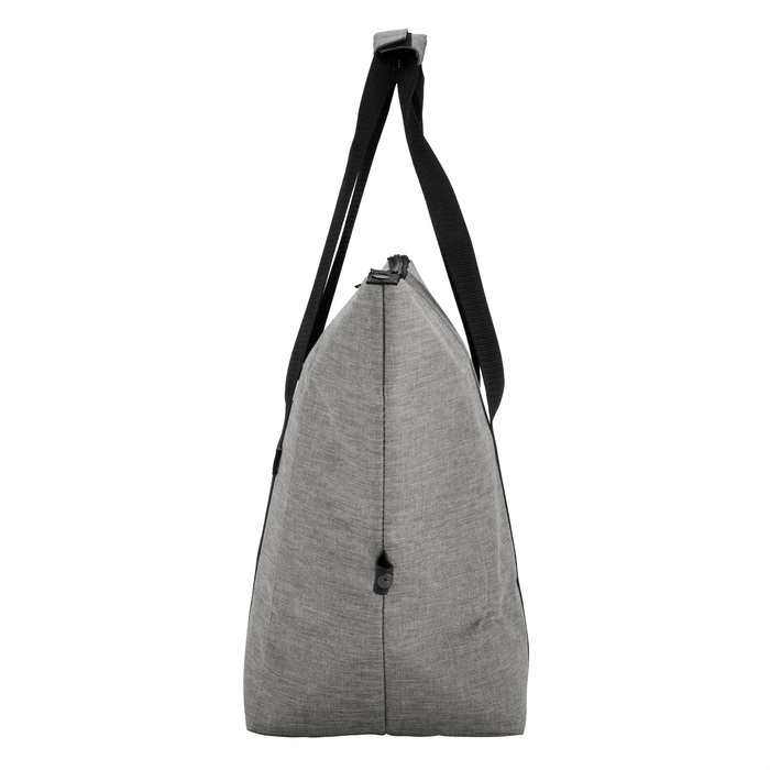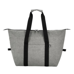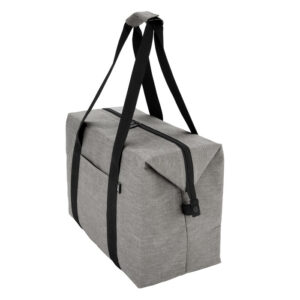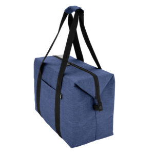 Espacio funcional con forma adaptable.Bolso termico. Cierre posterior con dos tiradores. Hebillas metalicas en los laterales que permiten cambiar su formato a prisma. Bolsillo frontal. Dos asas con refuerzo de velcro.Medidas: 37,5 x 20 x 26 cm.Capacidad: 19 litrosMateriales: Exterior de poliester 300D recubierto de RPET. Interior de espuma de polietileno recubierto con laminas de aluminio