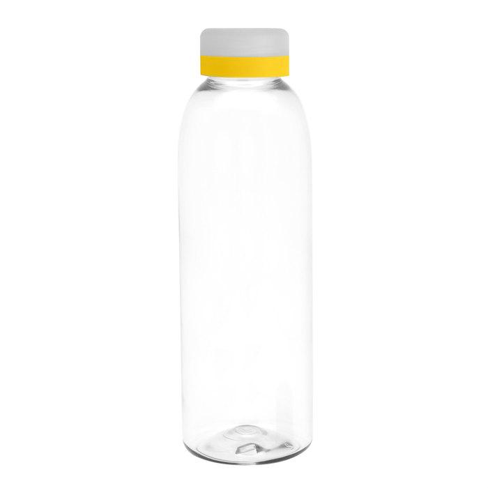 Diseno practico para un uso diario.Botella de plastico transparente con tapa a rosca esmerilada con anillo de silicona de diferentes colores.Medidas: Ø 7 x 23 cm. Capacidad: 700 ml. Peso: 70 g. (botella) y 15g. (tapa) Materiales: PET Cristalino. ATENCION Botella y tapa se entregan por separado. / No utilizar con bebidas gaseosas ni liquidos calientes. / El manejo de este producto es delicado. / No exponer al sol y temperaturas altas por tiempo prolongado