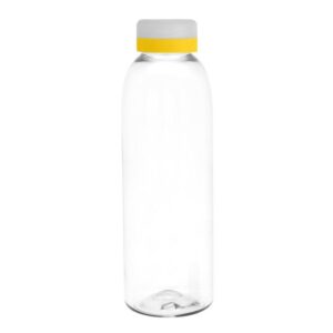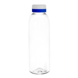Diseno practico para un uso diario.Botella de plastico transparente con tapa a rosca esmerilada con anillo de silicona de diferentes colores.Medidas: Ø 7 x 23 cm. Capacidad: 780 ml.Peso: 70 g. (botella) y 15g. (tapa) Materiales: PET Cristalino. ATENCION Botella y tapa se entregan por separado. / No utilizar con bebidas gaseosas ni liquidos calientes. / El manejo de este producto es delicado. / No exponer al sol y temperaturas altas por tiempo prolongado