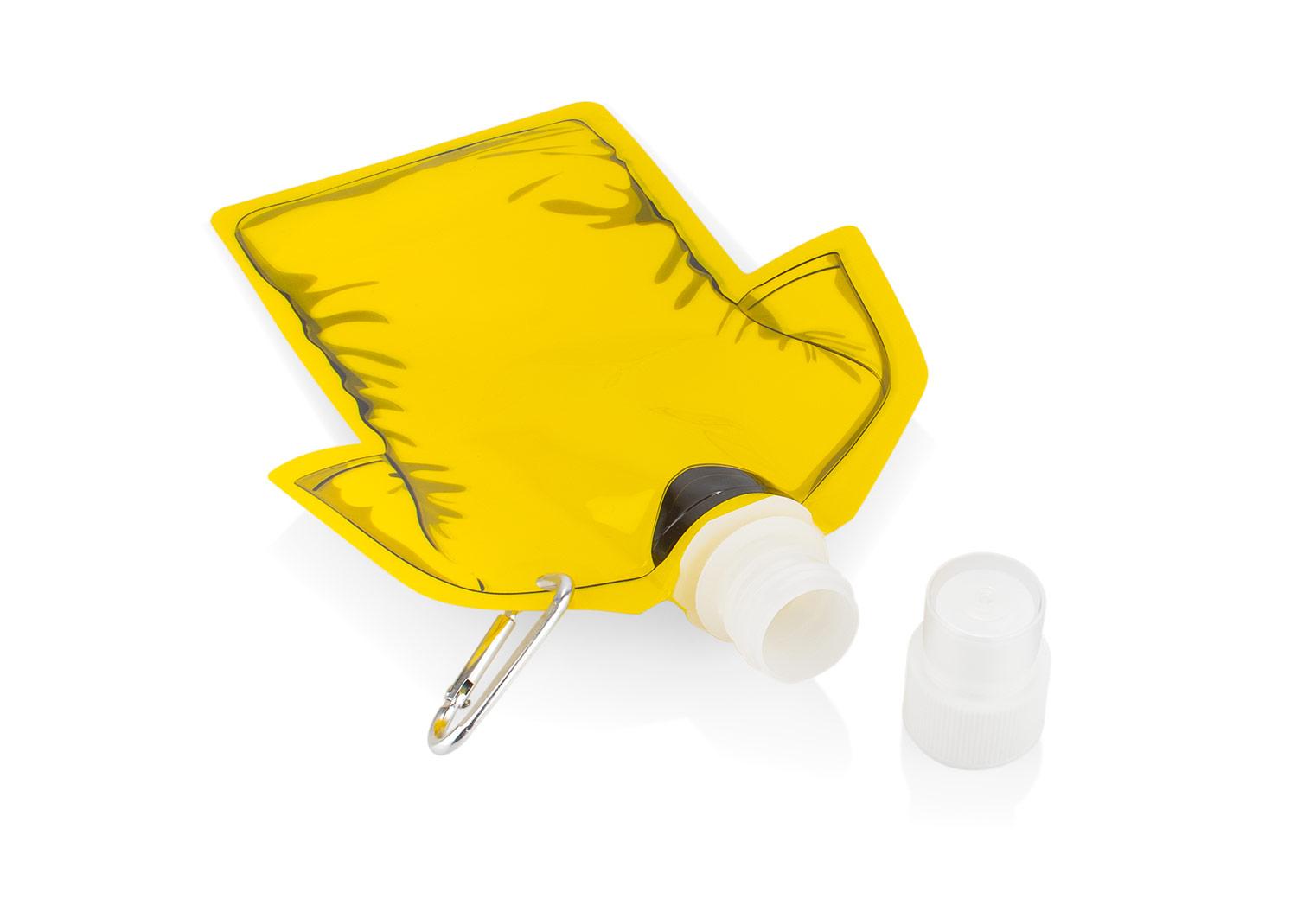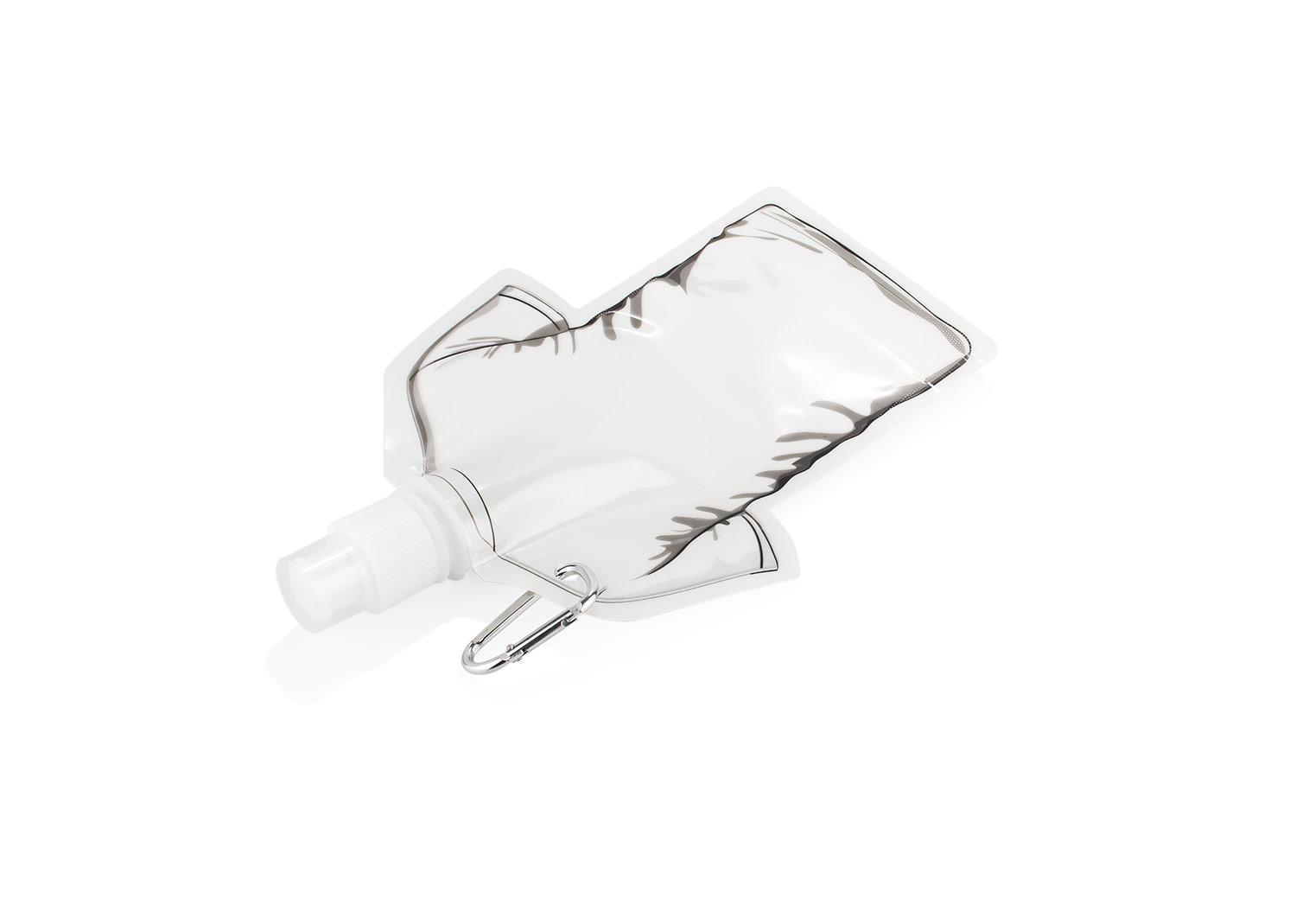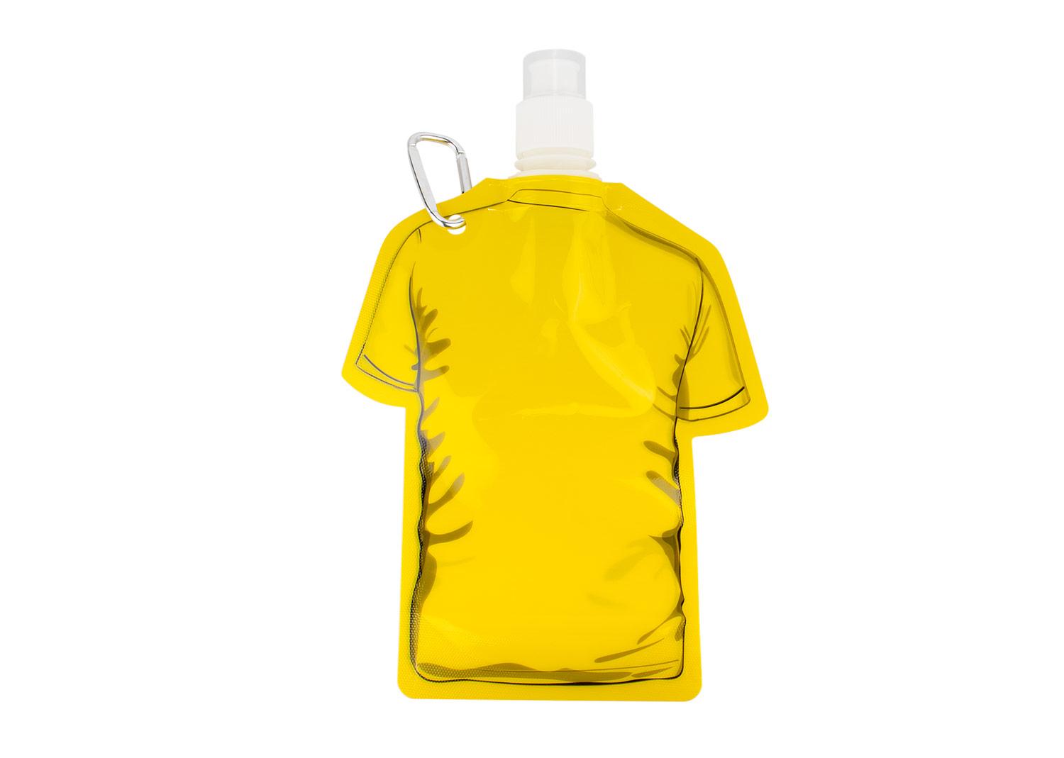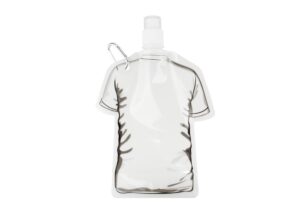 Botella plegable con forma de camiseta, fabricada en PET, ideal para actividades al aire libre o eventos. Su diseno compacto permite doblarla cuando esta vacia, ahorrando espacio en mochilas o bolsos. Cuenta con tapa de cierre giratorio y boquilla con tapa adicional, que garantiza un consumo higienico y seguro. Incluye gancho carabinero para sujetarla facilmente a mochilas, cinturones o llaveros. Capacidad: 480 ml / 16 Oz || Material: PET || Tamaño: 16.7 cm de ancho x 25.2 cm de alto