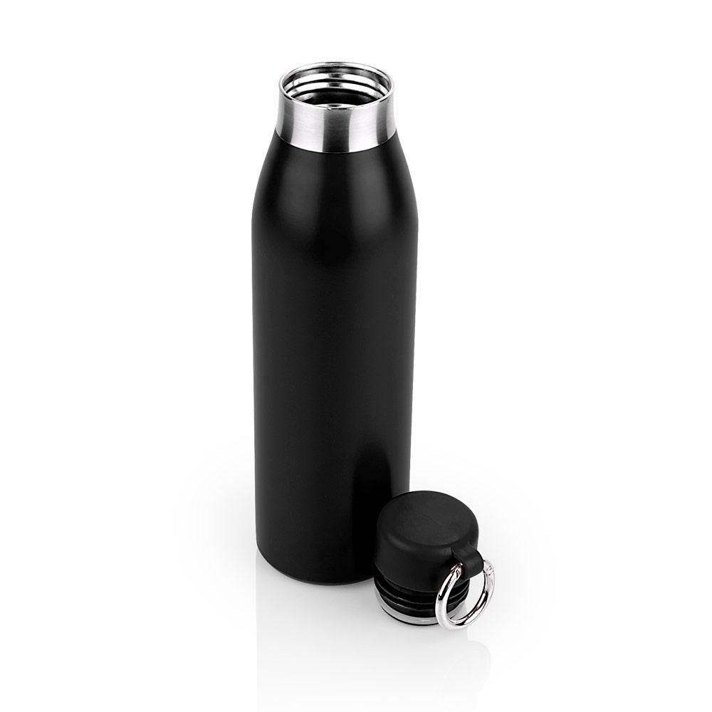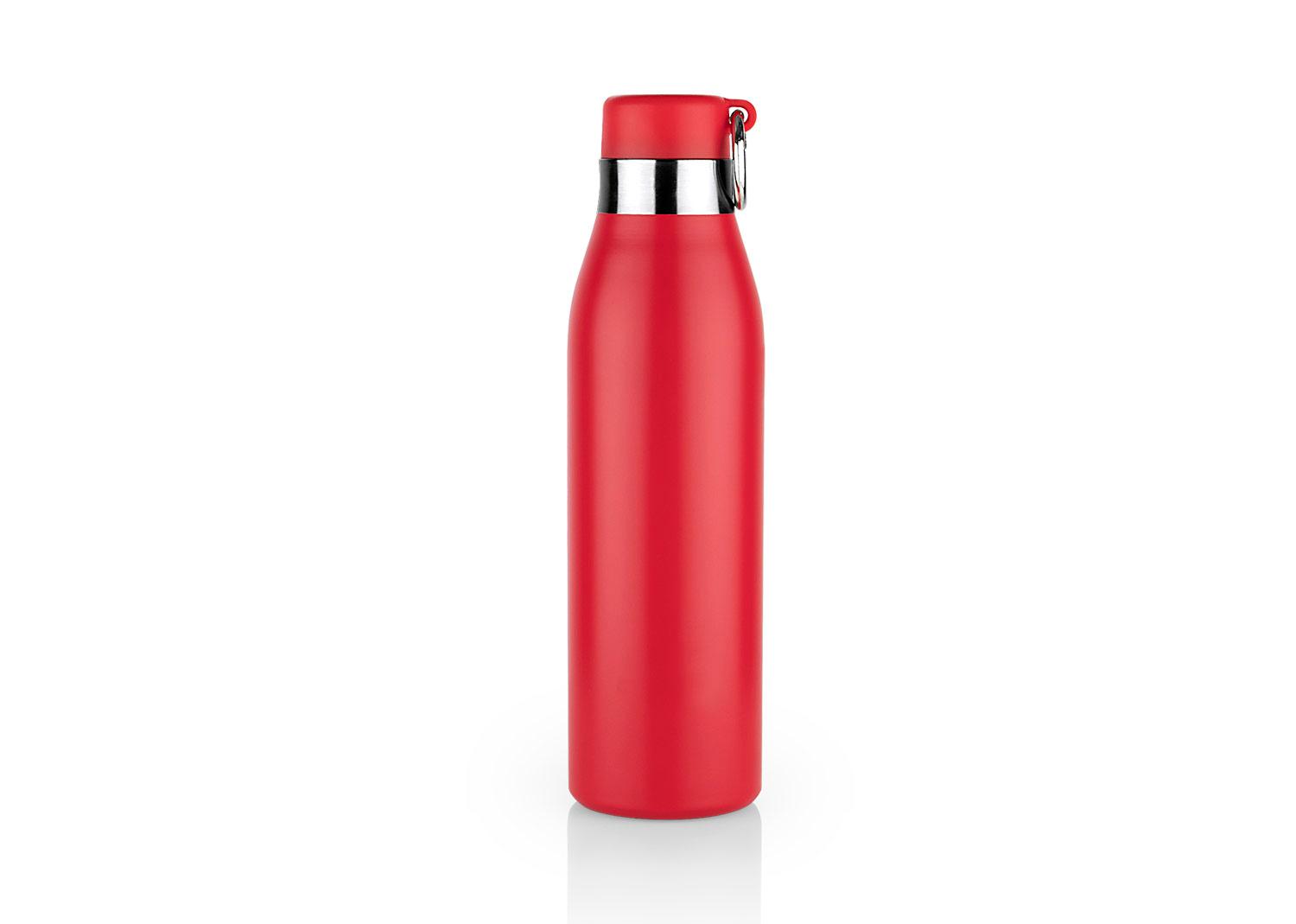 Botella fabricada en acero inoxidable, equipada con tapa de cierre giratorio y gancho carabinero que facilita su transporte. Cuenta con base antideslizante que proporciona mayor estabilidad en superficies lisas. Su diseno resistente y funcional la hace ideal para uso diario en movimiento. Gracias a su tecnologia de aislamiento, puede mantener bebidas frias o calientes por aproximadamente 8 horas. Capacidad: 500 ml / 17 Oz || Material: Acero Inoxidable || Tamaño: Diámetro de 4.9 cm