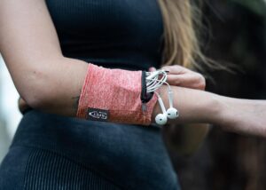 Brazalete fabricado en RPET con un pequeno y practico bolsillo de cremallera || Material: RPET (Poliéster Reciclado) || Tamaño: Diámetro de 0 cm