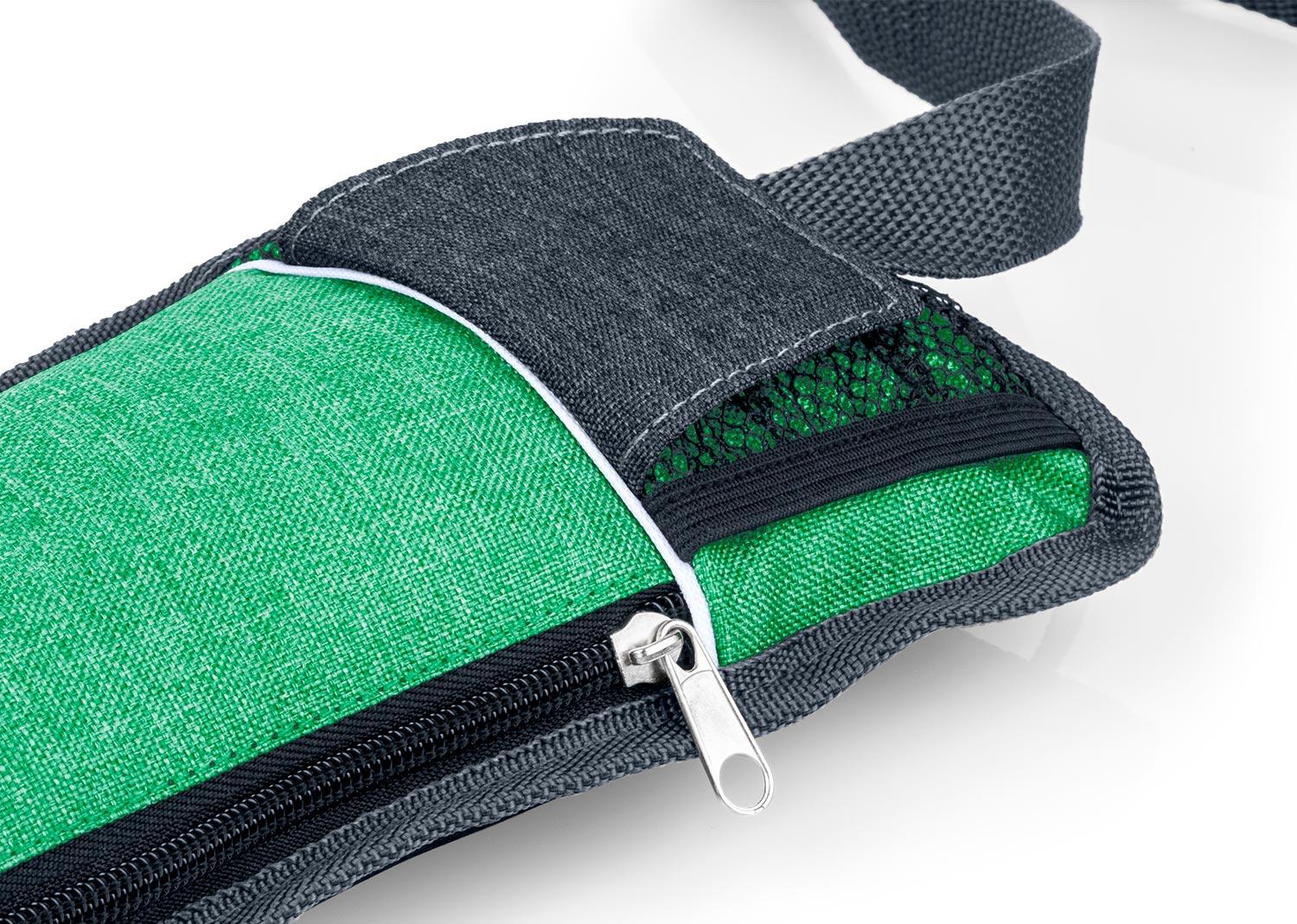 Canguro con correa ajustable de 105 cm y cierre tipo click, con bolsillos frontales en malla de facil acceso ideales para llevar cables, audifonos etc || Material: Poliéster 600D || Tamaño: 34.00 x 14.00 x 0.50 cm