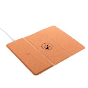 Mouse Pad en corcho natural Con cargador inalambrico de 10W, base antideslizante y soporte para movil olegable de 3 cuerpos. ncluye cable tipo C. Compatible con telefonos celulares que tengan carga inalambrica de cualquier marca. De 26.5 cm x 20.5 cm. – Impresion: Tampografia Tamano Area Impresa: 12 x 10 cm. – Caja: 54x51x23 cm. 120 unidades 21.5 KG