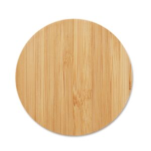 Cargador inalambrico elaborado en bambu. Carga de 10 W. Input:9V-2A / Output: 5V-2A. Incluye cable USB. Compatible con telefonos celulares que tengan carga inalambrica de cualquier marca. De 9.2 x 9.2 x 1 cm. – Impresion: Tampografia o screen Tamano Area Impresa: 9 x 14 cm. – Caja: 44x27x40 cm. 150 unidades 13.3 KG