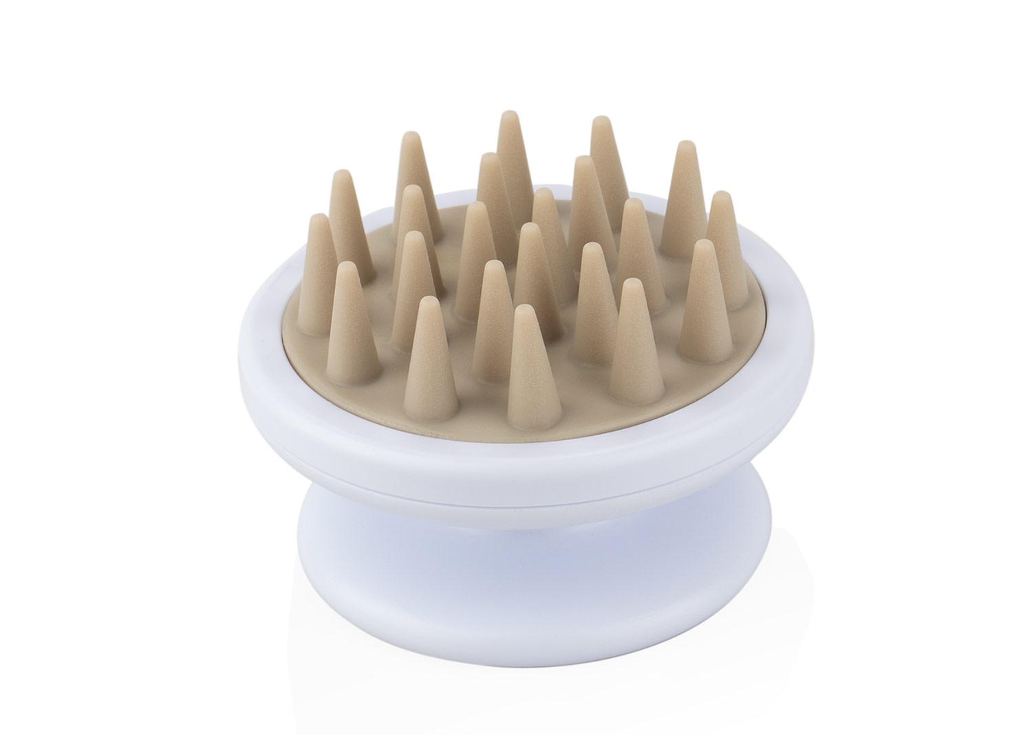 Cepillo masajeador para cuero cabelludo, fabricado en plastico con puas de silicona que brindan suavidad y comodidad. Cuenta con un mango ergonomico para un agarre seguro, ideal para aplicar shampoo, estimular la circulacion y relajar durante el lavado. Resistente, facil de limpiar y disenado para uso diario || Material: Plástico + Silicona || Tamaño: Diámetro de 6.8 cm