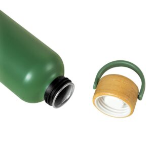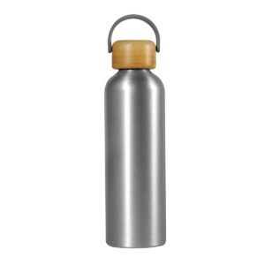 Cilindro metalico de una pared. Tapa de bambu con cierre de rosca y asa de plastico. Terminado mate. Incluye caja individual.El bambu es un producto natural el cual puede presentar variaciones en tonalidades y vetas || Material: Aluminio / Plástico / Bambú || Tamaño: 7 x 23.5 cm