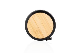 Esta cinta metrica retractil cuenta con una longitud de 150 cm y 60 pulgadas. La medida se mantiene fija en la posicion deseada, y al presionar el boton, la cinta se retrae rapidamente. Su diseno compacto y funcional la hace ideal para mediciones rapidas y precisas en distintos entornos || Material: Bambú || Tamaño: Diámetro de 3.8 cm