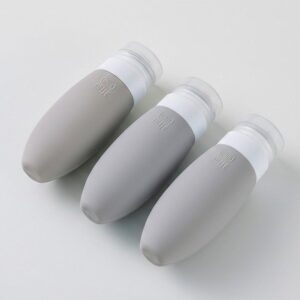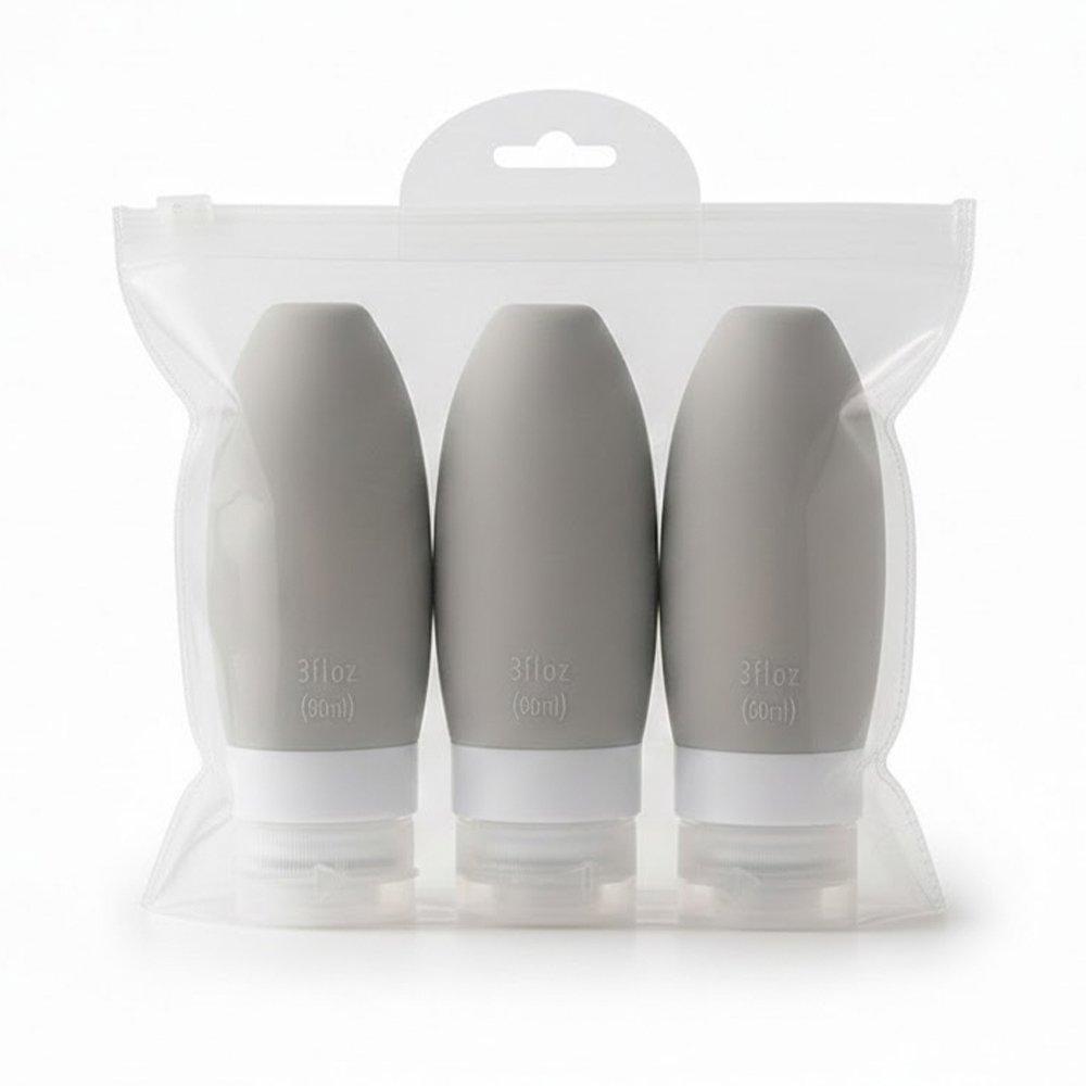 Set de 3 frascos siliconados con tapa plastica de 90 ml. Bolsa PVC con cremallera plastica sellable. De 9 x 3.4 cm. – Impresion: Tampografia, con tratamiento Tamano Area Impresa: 2.5 x 2 cm. – Caja: 51 x 51 x 47 cm. 200 unidades 23.5 KG