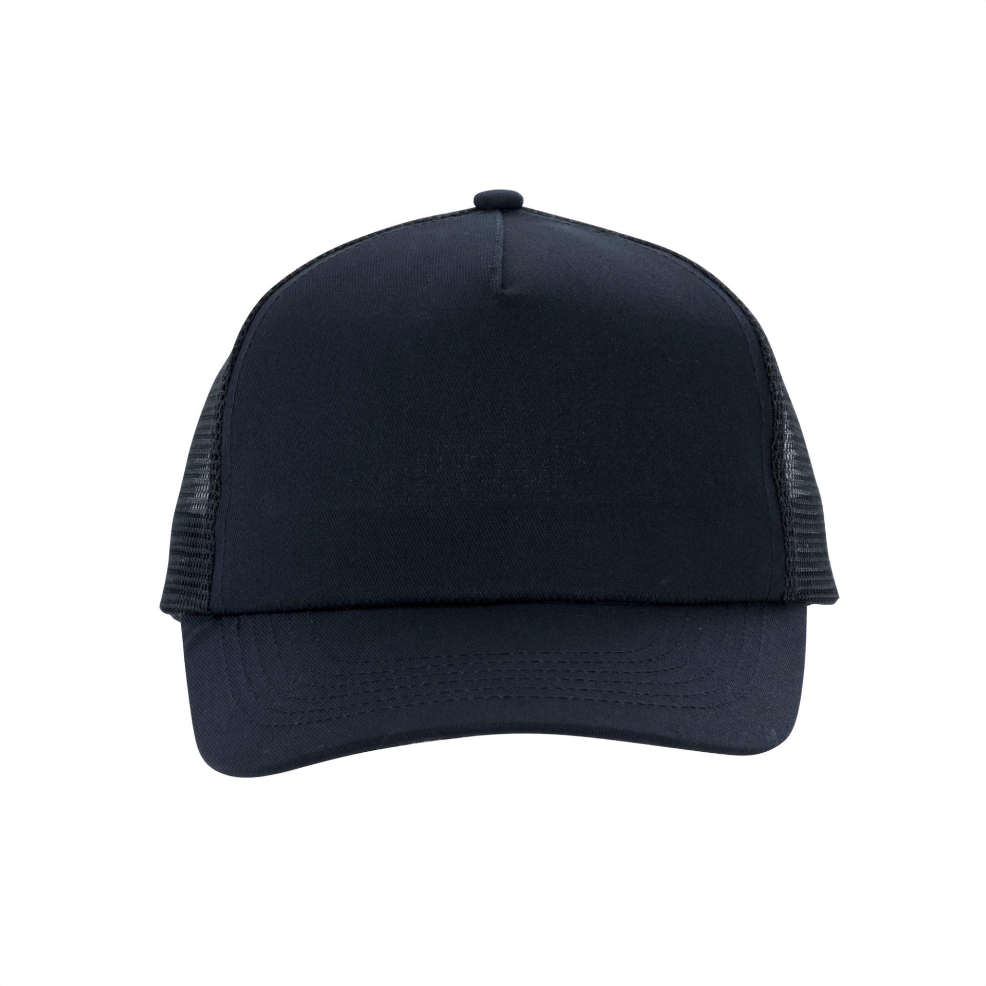 Frescura y estilo en movimiento.Gorra con visera. 5 paneles. Panel frontal y visera de algodon. Paneles posteriores de malla poliester del mismo color. Boton forrado. Banda absorbente de poliester. Cierre con broche plastico ajustable de doble cremallera del mismo color.Medidas: 18,5 x 25,5 x 12 cm. / 58 cm. circunferencia. Materiales: Algodon y poliester