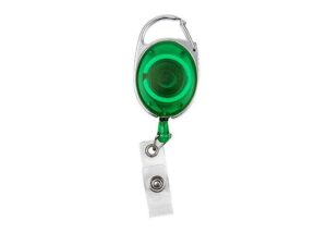 Portacarne con sistema retractil y gancho carabinero || Material: Marco de zinc / ABS / PVC || Tamaño: 3.50 x 5.50 x 0.50 cm