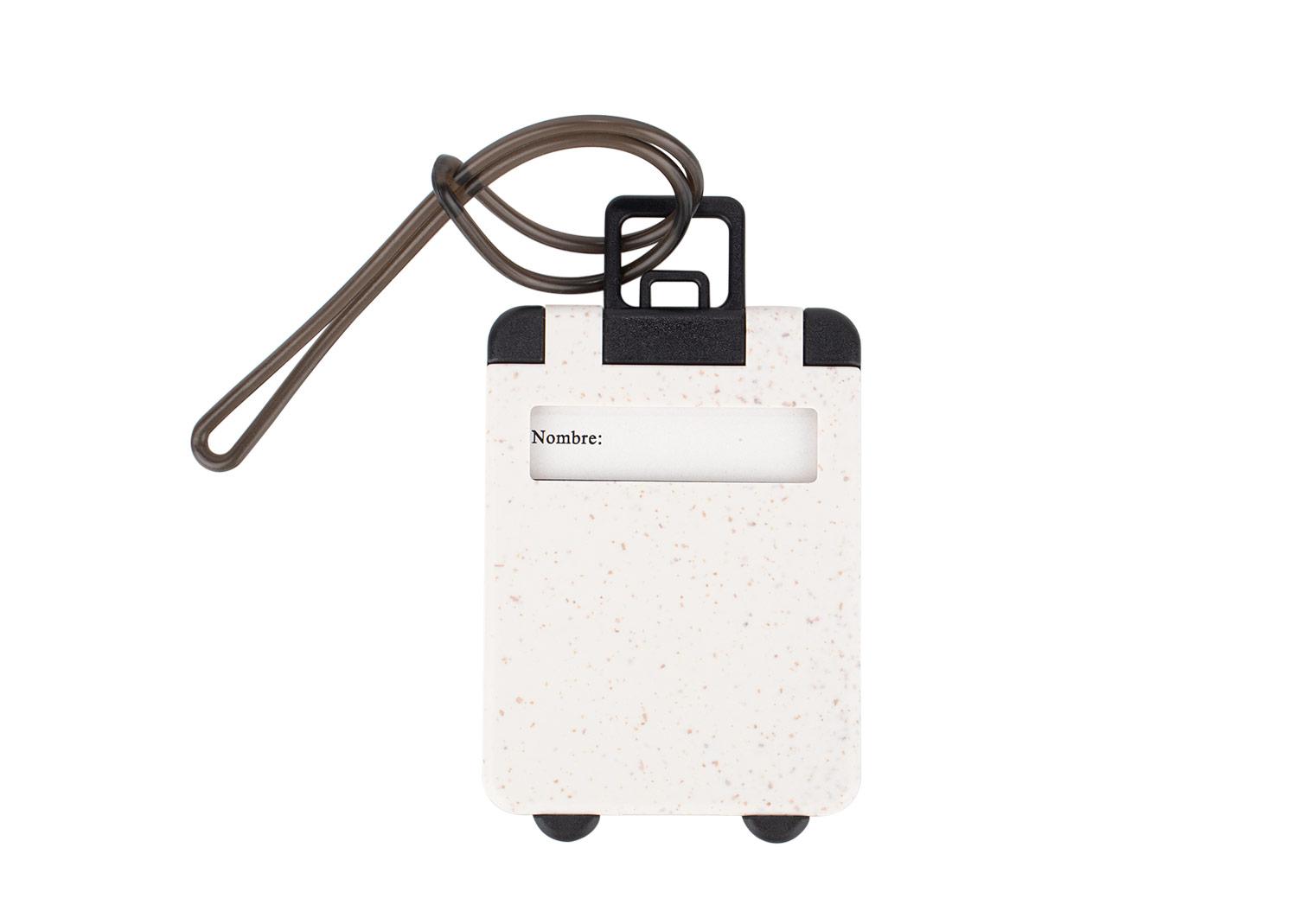 Etiqueta de equipaje ecologica fabricada en material de paja de trigo, con correa de PVC resistente para sujetarla facilmente a maletas o mochilas. En su interior incluye una pegatina para datos personales como nombre, direccion, correo electronico y telefono, lo que facilita la identificacion del equipaje en caso de perdida || Material: PP + Paja de trigo + PVC || Tamaño: 5.5 cm de ancho x 9.5 cm de alto