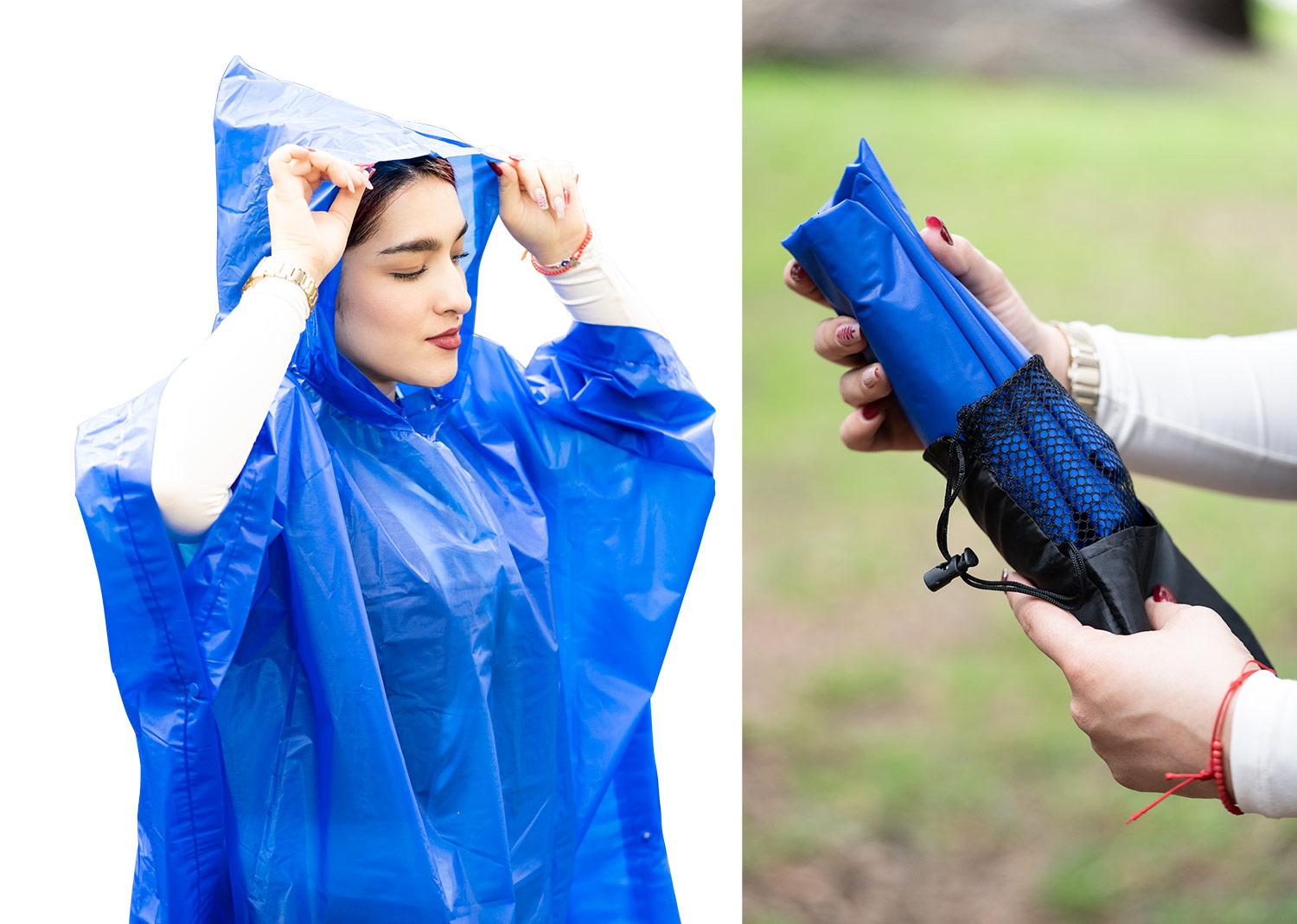 Impermeable en PEVA, empacado en un practico estuche de malla RPET con bolsillo frontal. Incluye cordon para facilitar el transporte y un seguro ajustable para mantenerlo compacto. El impermeable cuenta con dos botones a presion a cada lado, ofreciendo un ajuste comodo y proteccion efectiva en dias de lluvia. Ideal para llevar en salidas, viajes o uso diario || Material: PEVA + RPET || Tamaño: 12.2 cm de ancho x 21 cm de alto