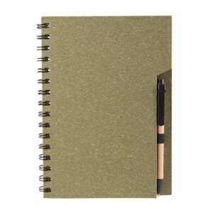 Libreta con 70 hojas de raya. Incluye boligrafo ecologico y espiral metalico doble || Material: Cartón / Papel Reciclado || Tamaño: 15.4 x 20.9 cm