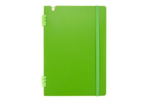 Libreta practica en formato A5, con cubierta y contraportada de tapa blanda en PP que ofrece resistencia y ligereza. Incluye 80 hojas cuadriculadas de papel de 70 g/m2, ideales para escritura ordenada, y cuenta con espiral suave para un manejo comodo. Su diseno incorpora un elastico exterior que asegura un cierre firme, perfecta para uso diario en oficina, estudio o actividades personales || Material: PP + Papel 70 gr || Tamaño: 14.8 x 21 x 1.4 cm