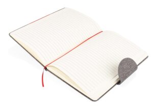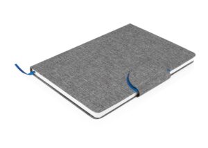 Libreta ecologica con tapa dura en PU de color combinado con tela RPET, que ofrece un diseno moderno y sostenible. La contraportada esta fabricada en tela RPET y cuenta con una hebilla magnetica que mantiene la libreta cerrada de forma segura. En su interior, incluye 80 hojas de papel rayado de 70 g/m2 e incorpora una cinta marcadora para facilitar la organizacion || Material: PU + RPET + Papel 70 gr || Tamaño: 15.3 x 21.2 x 1 cm