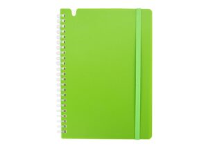 Libreta funcional con portada y contraportada en PP de color, resistente y flexible. Contiene 80 hojas interiores de papel de 70 g/m2, ideales para escritura diaria. Su encuadernacion con espiral suave permite un facil manejo y apertura plana, perfecta para uso escolar, universitario o de oficina || Material: PP + Papel 70 gr || Tamaño: 14.5 x 21.1 x 0.7 cm