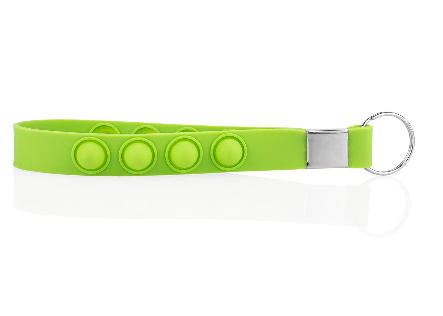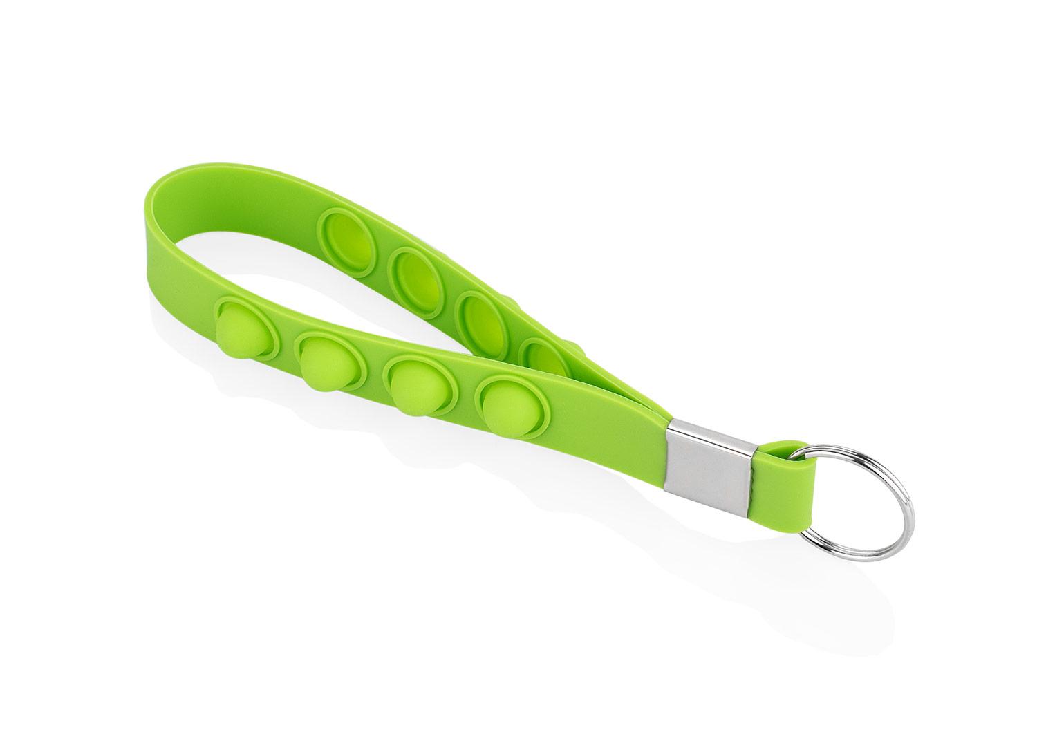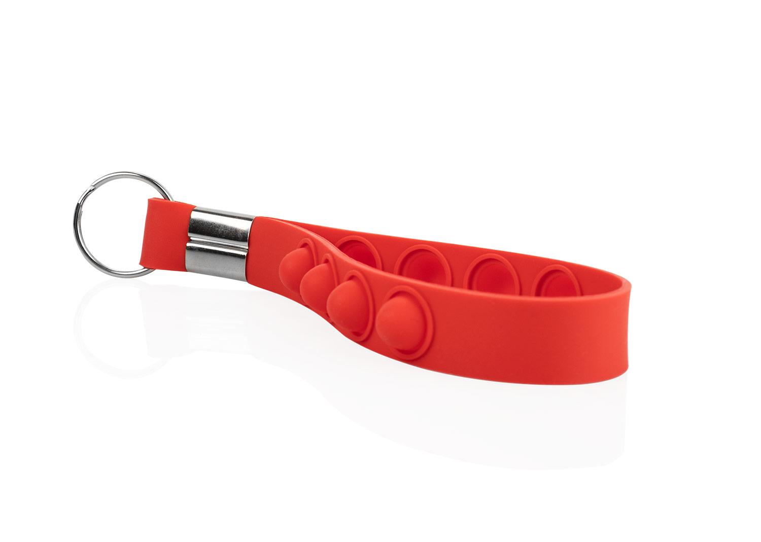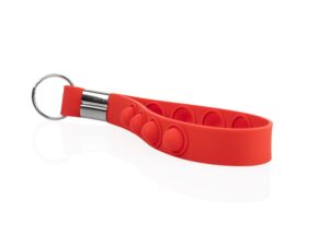 Llavero funcional y divertido fabricado en silicona flexible, disenado con superficie de burbujas presionables que ofrecen una experiencia tactil relajante. Ideal para aliviar el estres en cualquier momento del dia. Incluye argolla metalica para sujetar llaves o accesorios || Material: Silicona || Tamaño: 2.5 x 16.6 x 1.8 cm