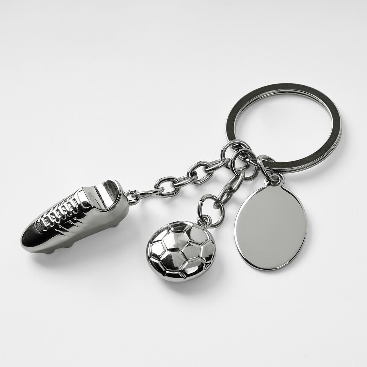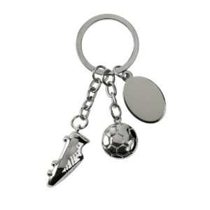 Llavero metalico de futbol soccer. Incluye placa para grabado, 1 dije de zapato soccer y 1 dije de balon. Su diseno evoca el espiritu deportista y la pasion por el futbol || Material: Metal || Tamaño: 3.4 x 10.3 cm