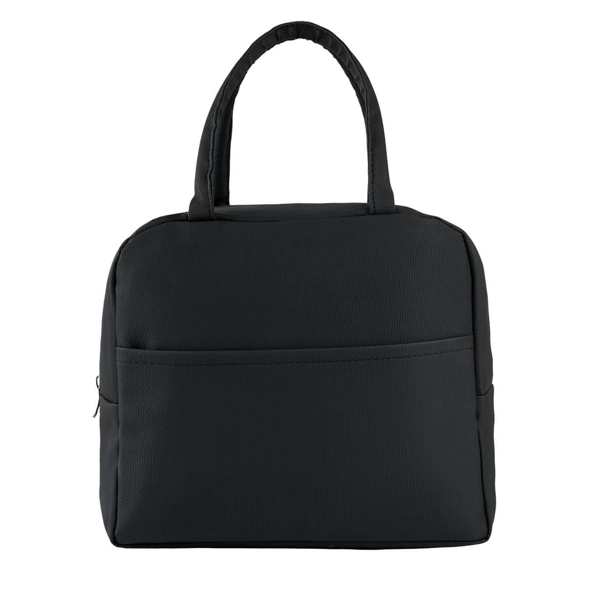Lonchera con interior plastificado. Fabricada en material tipo curpiel que combina elegancia y practicidad. Cuenta con un bolsillo principal con cierre, para mantener tus alimentos seguros y bien organizados. Ademas, tiene un bolsillo adicional en la parte frontal ideal para cubiertos, servilletas, snacks u objetos pequenos. Su acabado facilita su limpieza y le da un estilo moderno y atractivo. Su tamano compacto la convierte en la opcion ideal para llevar al trabajo, la escuela o cualquier actividad diaria. Capacidad 6 latas || Material: Poliéster / PU / Acetato de vinilo de polietileno || Tamaño: 24 x 21 x 16 cm