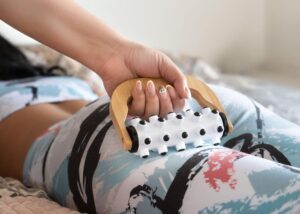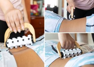 Masajeador plastico con agarre de bambu disenado para brindar una experiencia relajante. Este masajeador cuenta con puntas redondas suaves que estimulan la circulacion y alivian la tension muscular || Material: Bambú + Plástico || Tamaño: Diámetro de 0 cm