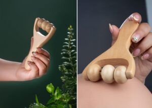 Masajeador de madera con rodillos disenado para brindar una experiencia relajante. Este masajeador de madera cuenta con rodillos suaves que estimulan la circulacion y alivian la tension muscular || Material: Bambú || Tamaño: Diámetro de 0 cm