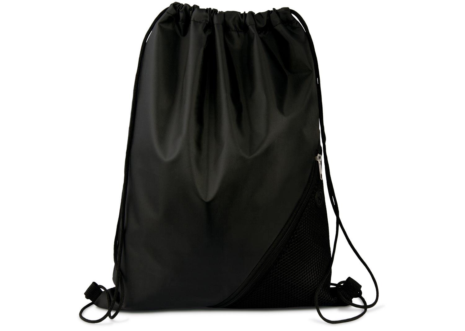 Bolsa dos colores con cordon para ajustar y cargar. Bolsillo delantero en malla con cremallera y orificio para audifonos || Material: Poliéster 210D || Tamaño: 34.00 x 44.00 x 0.30 cm