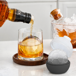 Molde para hielo siliconado de dos piezas con forma y textura de balon de futbol.De 5.3 cm x 5.5 cm – Impresion: Tampografia silicona Tamano Area Impresa: 3 x 2 cm – Caja:51x35x35 cm. 350 unidades 201 KG