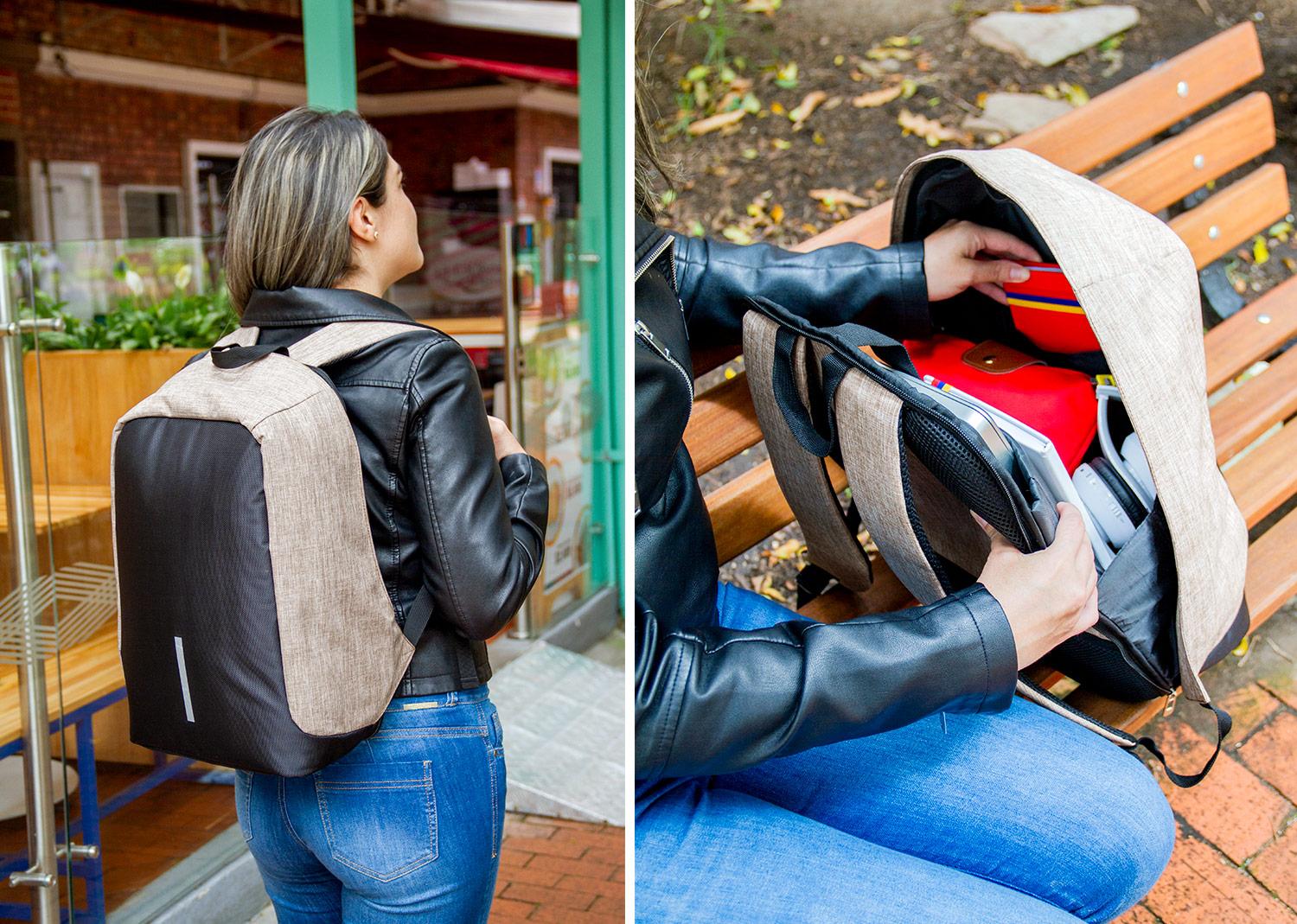 Morral antirrobo con cremallera del bolsillo principal oculta en la parte posterior, que al momento de llevar hace muy dificil de abrir, con una franja frontal que en la noches se refleja, cargaderas ajustables y acolchadas, espaldar acolchado, bolsillo principal cierre doble cremallera con compartimiento apropiado para portatil de hasta 19 con velcro interno a cada lado de la maleta para dar mayor amplitud al momento de abrir, espacio interior para libreta y/o celular. Volumen aproximado: 17 litros || Material: 600D/PVC Snow Poliéster || Tamaño: 34.00 x 43.00 x 13.00 cm