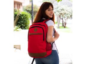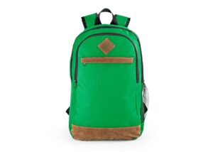 Morral con bolsillos principales con cierre de cremallera, bolsillos laterales, uno en malla, el otro del mismo material del morral, cargaderas ajustables. Volumen aproximado: 19 litros || Material: 600 x 300D/PVC Poliéster + Cuero || Tamaño: 31.5 x 48 x 13 cm