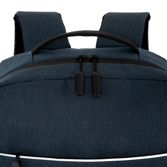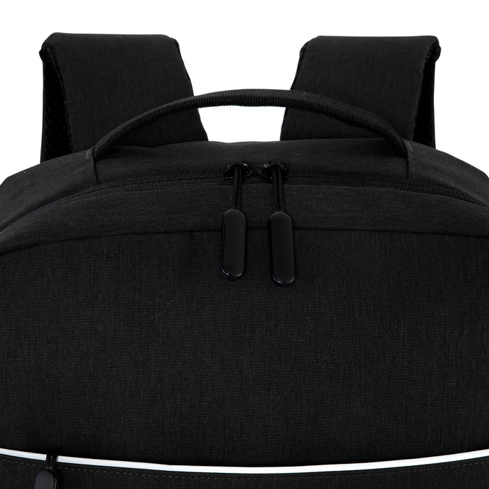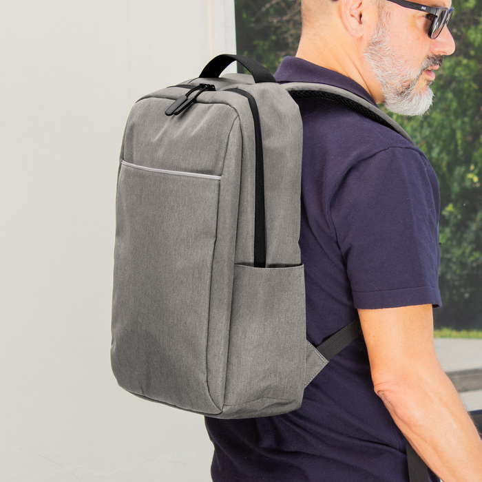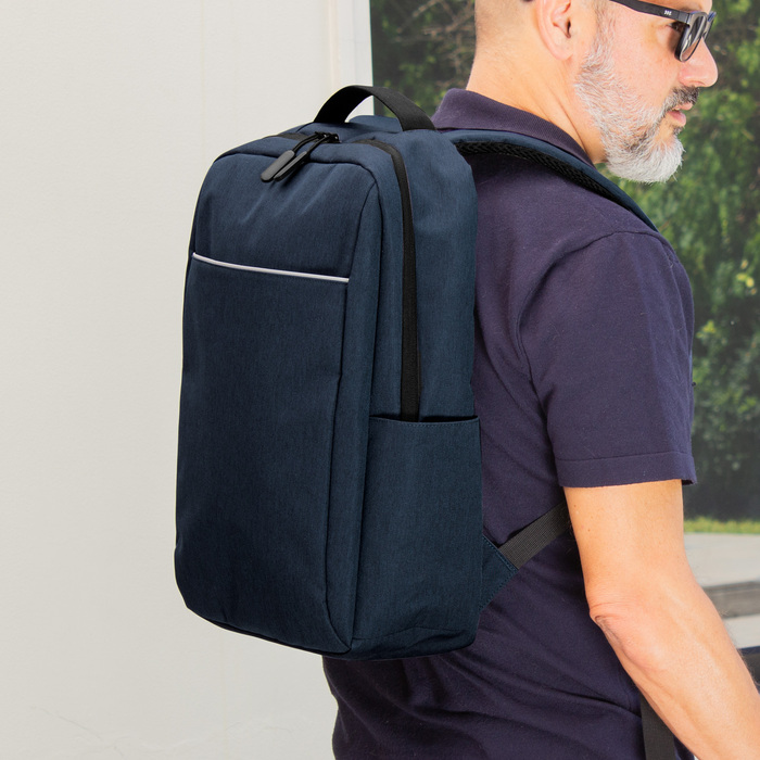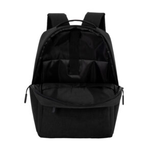 Ligera, funcional y lista para moverseMorral portanotebook de hasta 16 pulgadas. Compartimento principal con bolsillo posterior acolchado portanotebook con cierre de velcro y multiples bolsillos para accesorios. Amplio bolsillo frontal horizontal con ribete reflectivo. Dos bolsillos laterales portabotellas o accesorios. Asa superior reforzada. Correas ajustables y respaldo acolchados. Tira para sujetar la mochila en la manija extensible de un equipaje de mano. Tiradores de cierres plasticos texturados para un mejor agarre. Tejido ligero y resistente, de secado rapido.Medidas: 42 x 27,5 x 12,5 cm. Capacidad: 14 litros.Materiales: Poliester Taslon y espuma de polietileno
