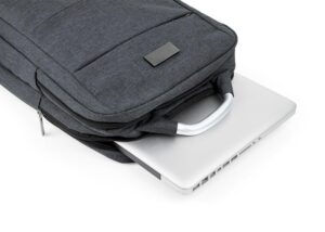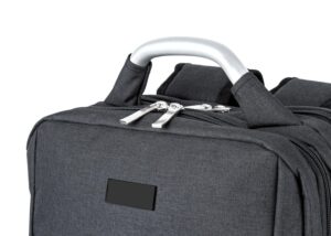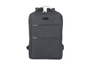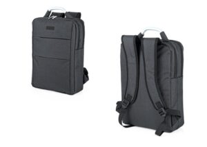 Morral con agarradera en Aluminio y cargaderas ajustables, un compartimento con velcro para portatil de hasta de 14 y el otro con bolsillo interior para boligrafo y libreta. Doble Bolsillo frontal con cierre de cremallera. Incluye placa metalica para marcar laser. Volumen aproximado: 14 litros || Material: 100% Poliéster || Tamaño: 29.00 x 40.00 x 11.00 cm