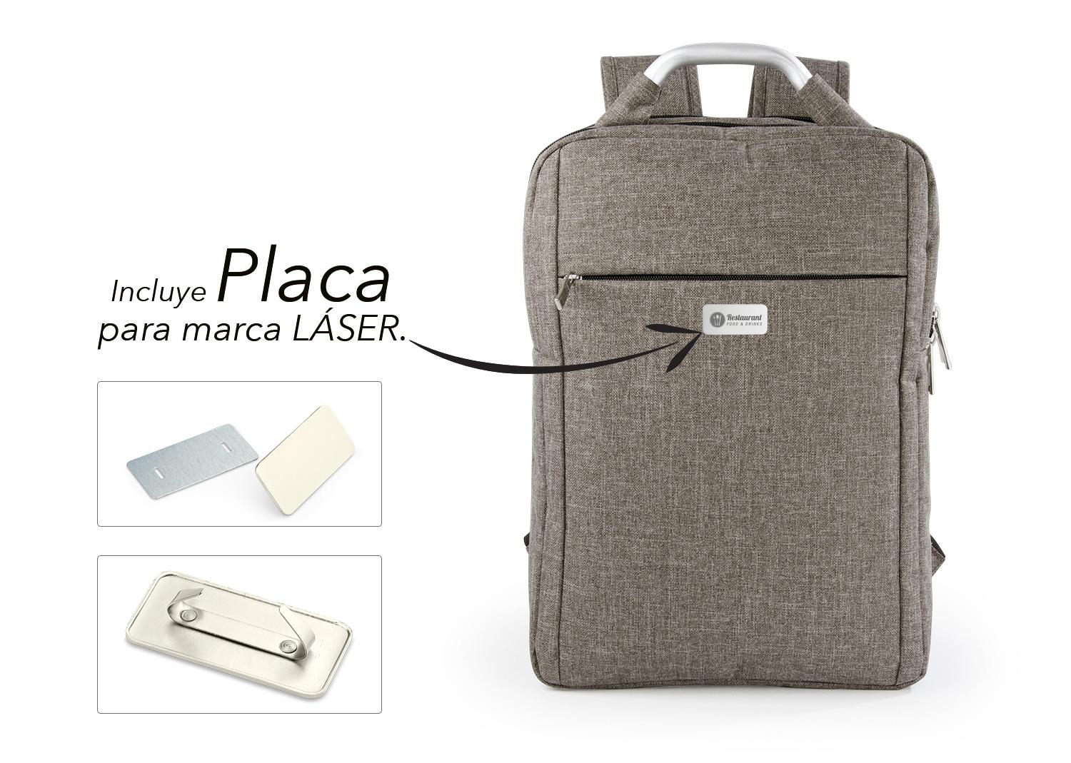Morral con cargaderas ajustables acolchadas, agarradera en aluminio, bolsillo medio con compartimientos utilitarios en el interior, bolsillo principal con compartimiento para portatil de 14in. Incluye placa para marca laser. Volumen aproximado: 14 litros || Material: 600D/PU + Paño de Nieve || Tamaño: 29.00 x 41.00 x 11.50 cm