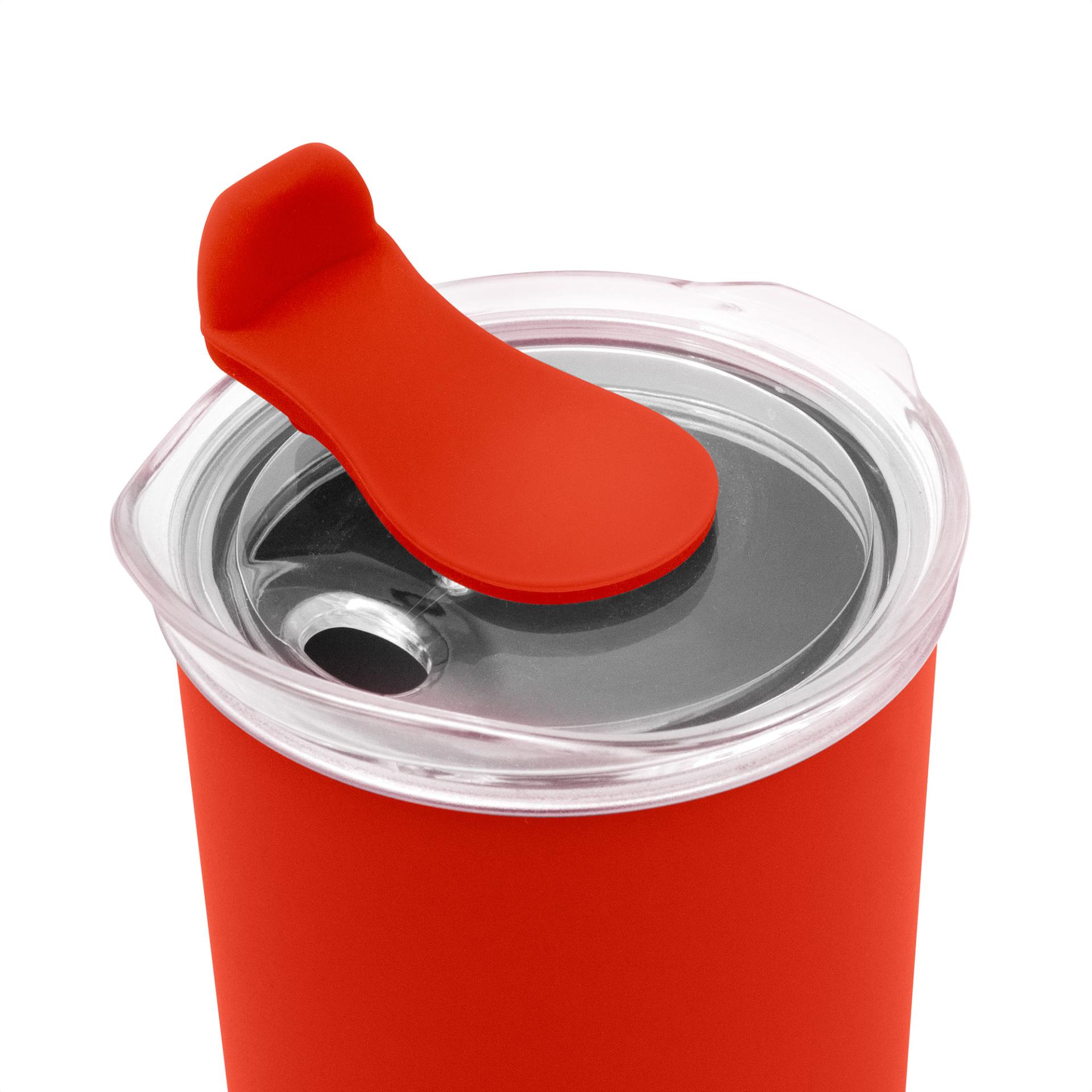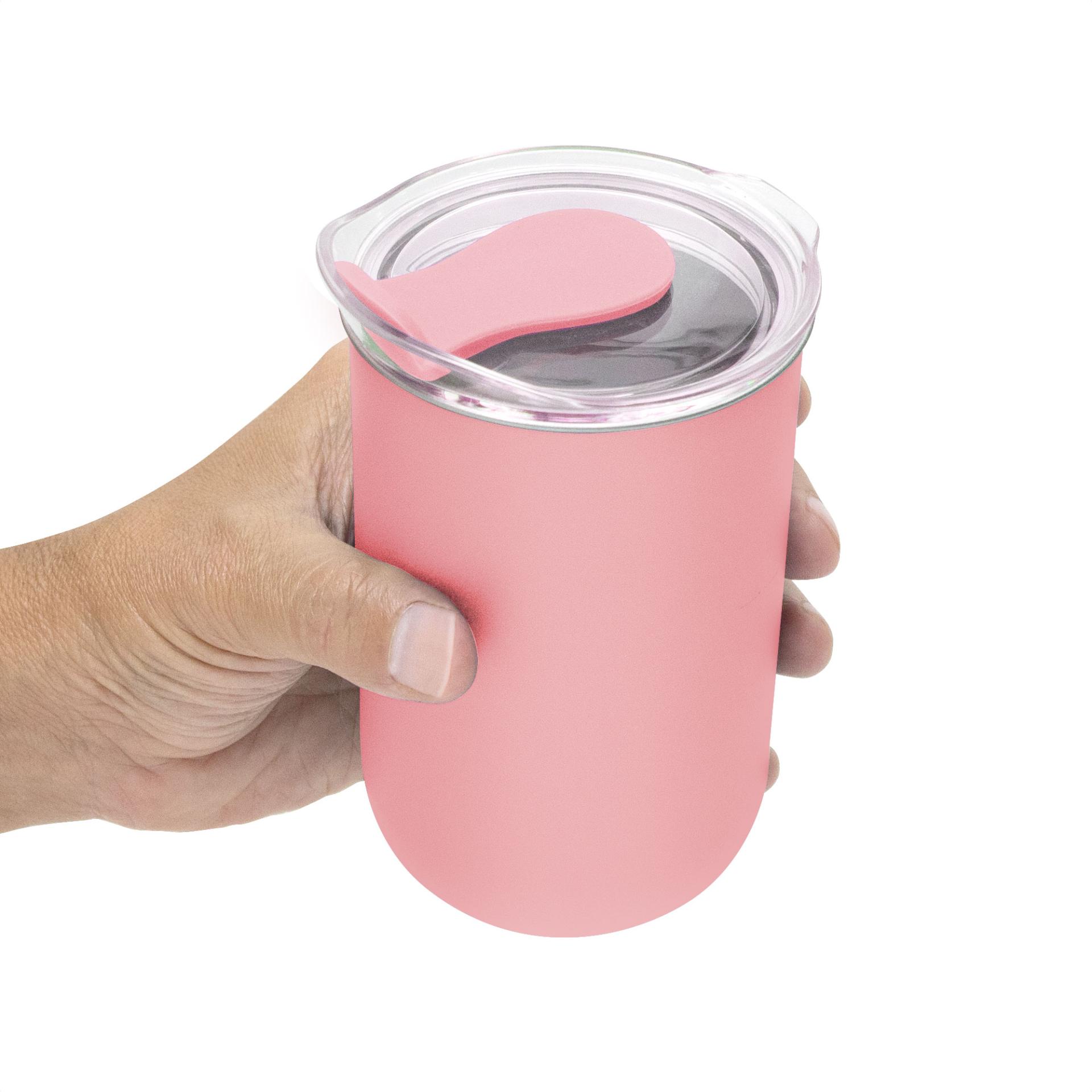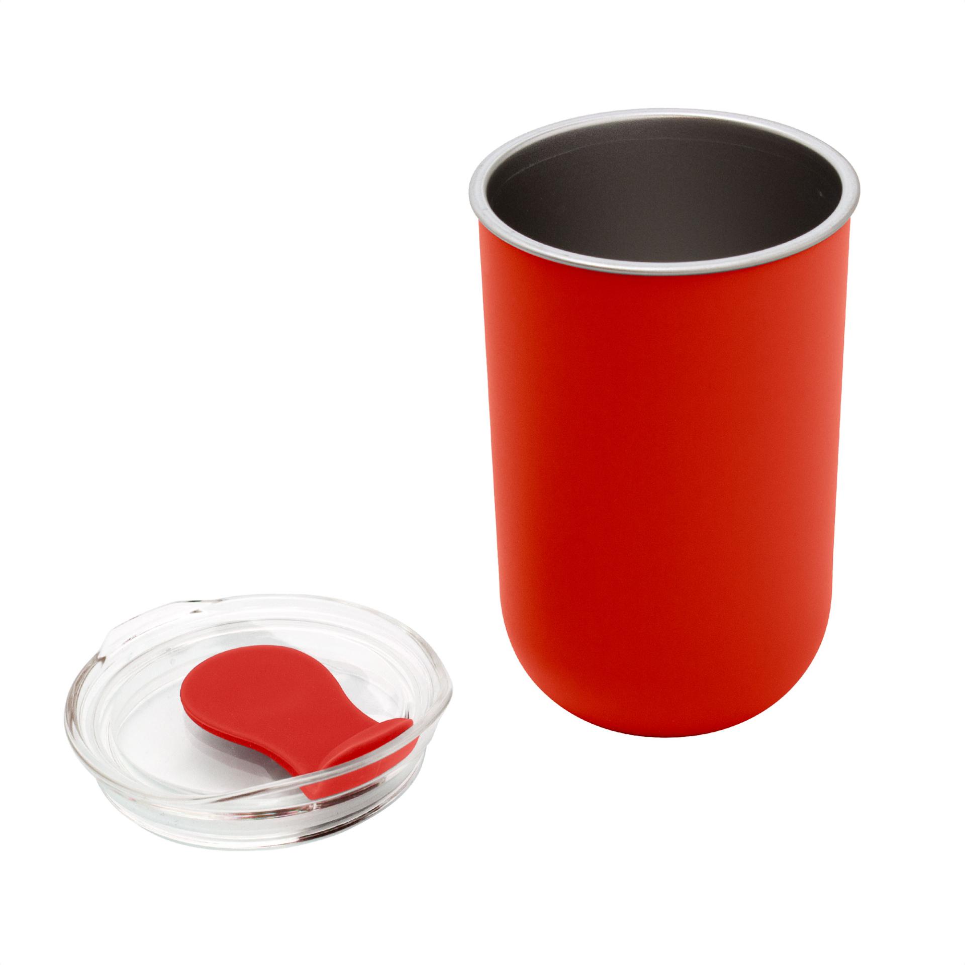 Elegancia y Aislamiento en MovimientoMug doble Pared. Interior de acero inoxidable 304 y exterior de polipropileno. Pintura acabado mate. Tapa plastica transparente a presion con anillo de silicona y cierre de silicona a tono con el color del cuerpo. Mantenga el tapon abierto si utiliza agua caliente.Medidas: Ø 7,7 x 13 cm. Capacidad: 350 ml. Materiales: Acero inoxidable, silicona, polipropileno y poliestireno. Presentacion: en caja de regalo kraft