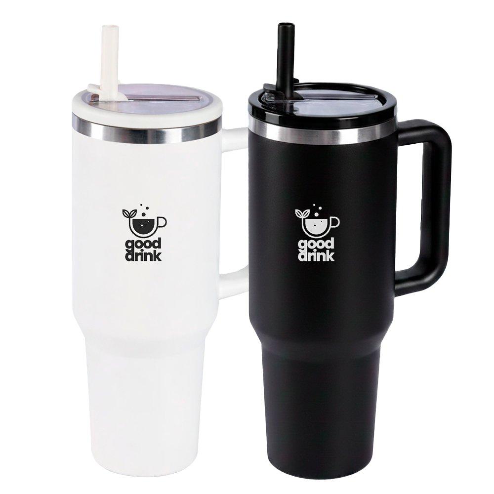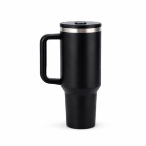 Mug con manija en acero inoxidable de doble capa termica que conserva calor entre 7-10 horas. Tapa antiderrames con pitillo. De 900 ml. De 23.7 x 9.8 cm. – Impresion: Tampografia o laser Tamano Area Impresa: 1.5 x 1.5 cm. – Caja:76x58x32 cm. 34 unidades 16.2 KG