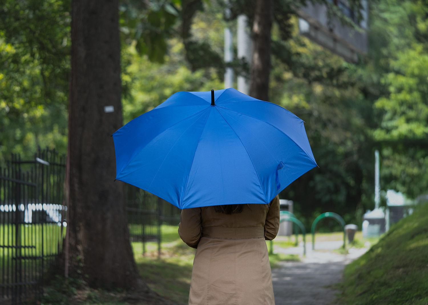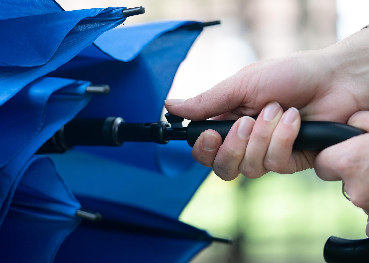 Paraguas tipo recto de 23in con apertura automatica. Varillas de fibra de vidrio, con eje central metalico de color negro. Diseno windproof (resistente al viento) que proporciona mayor estabilidad en condiciones climaticas adversas. Mango curvo de plastico PP con acabado tipo goma (soft touch). Puntas y remate superior plasticos || Material: Tela de Poliéster Pongee 190T || Tamaño: Diámetro de 121.5 cm