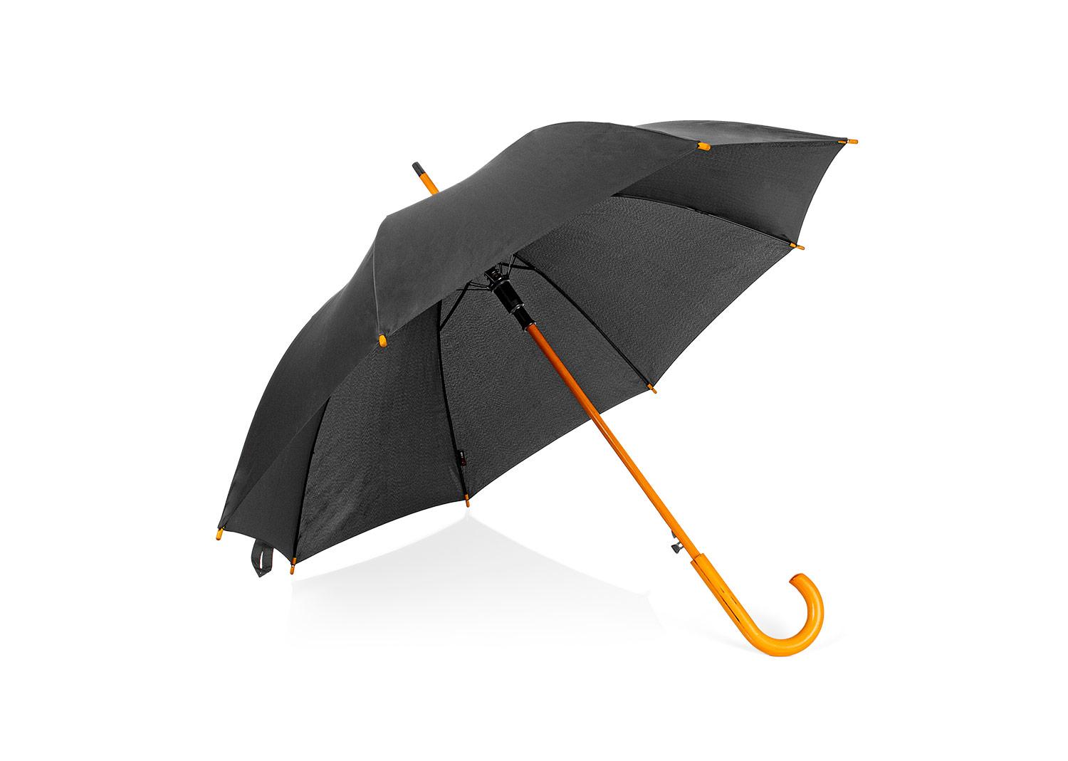Paraguas mango curvo, de apertura automatica y cierre manual. Varillas y eje metalico de acabado negro. Cierre con boton de madera. (Paraguas/Sombrilla) || Material: Pongee. Mango y botón de cierre en madera || Tamaño: 103.00 x 88.00 x 0.00 cm