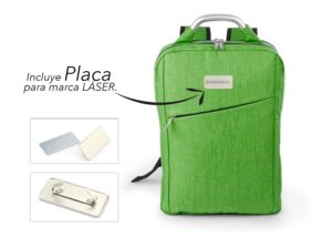 Morral con agarradera en Aluminio y cargaderas acolchadas, 2 bolsillos principales con doble cremallera, uno con compartimento con velcro para portatil de 14in y el otro con bolsillo interior para boligrafo y libreta. Bolsillo frontal con cierre de cremallera. Incluye placa metalica para marca laser. Volumen aproximado: 14 litros || Material: 600D Snow Poliéster || Tamaño: 29.00 x 41.00 x 11.50 cm