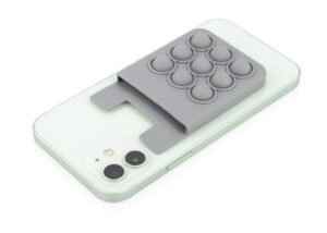 Portatarjetas de silicona disenado para adherirse facilmente al celular, ofreciendo una solucion practica para llevar tarjetas esenciales. Incorpora una superficie con burbujas antiestres, ideal para relajarse en cualquier momento. Su material flexible y resistente garantiza durabilidad y comodidad en el uso diario || Material: Silicona || Tamaño: 5.7 x 8.6 x 1 cm