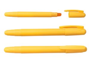 Resaltador con barril y tapa de color solido. Su punta de cera tipo wax permite un marcado suave y uniforme, sin riesgo de que se seque con el tiempo. Ideal para uso prolongado y ambientes escolares o de oficina || Material: Plástico PP || Tamaño: Diámetro de 1 cm
