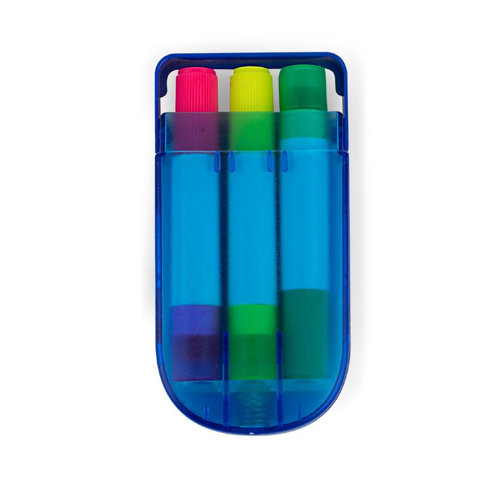 Set en estuche plastico de resaltadores en parafina x 3 unidades, no se secan || Material: PP || Tamaño: 5.30 x 10.50 x 1.50 cm